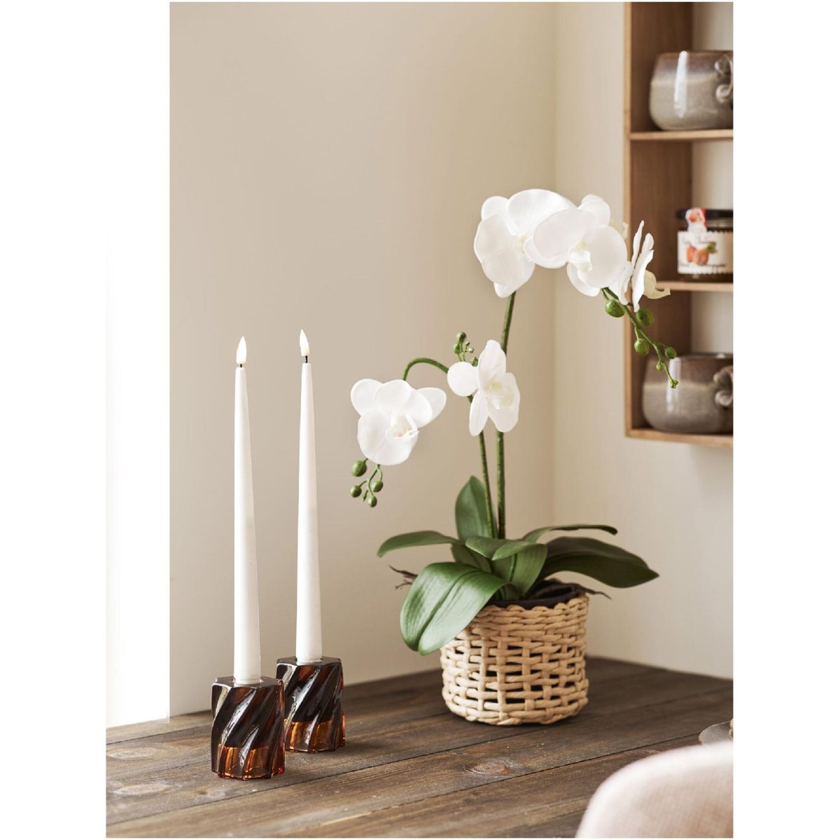 Door het compacte formaat plaats je deze set kaarsenhouders makkelijk in een groepje, als symmetrisch duo of in combinatie met hogere kandelaars en decoratieve trays. Ideaal voor het creëren van hoogteverschil en meer diepte in je tafeldecoratie of stylinghoek. Het donker getinte, bruine glas tempert fel kaarslicht en zorgt voor een behaaglijke, ontspannen gloed – perfect voor filmavonden, etentjes of momenten van ontspanning. Wissel af met geurkaarsen of neutrale theelichtjes om de sfeer af te stemmen op seizoen, gelegenheid en stemming. De neutrale, diepe smoked brown kleur laat natuurlijke materialen zoals hout, marmer, linnen en metaal extra goed uitkomen, terwijl je interieur rustig, harmonieus en luxe oogt. Een kleine toevoeging met een groots, sfeervol effect – elke dag én tijdens speciale gelegenheden.