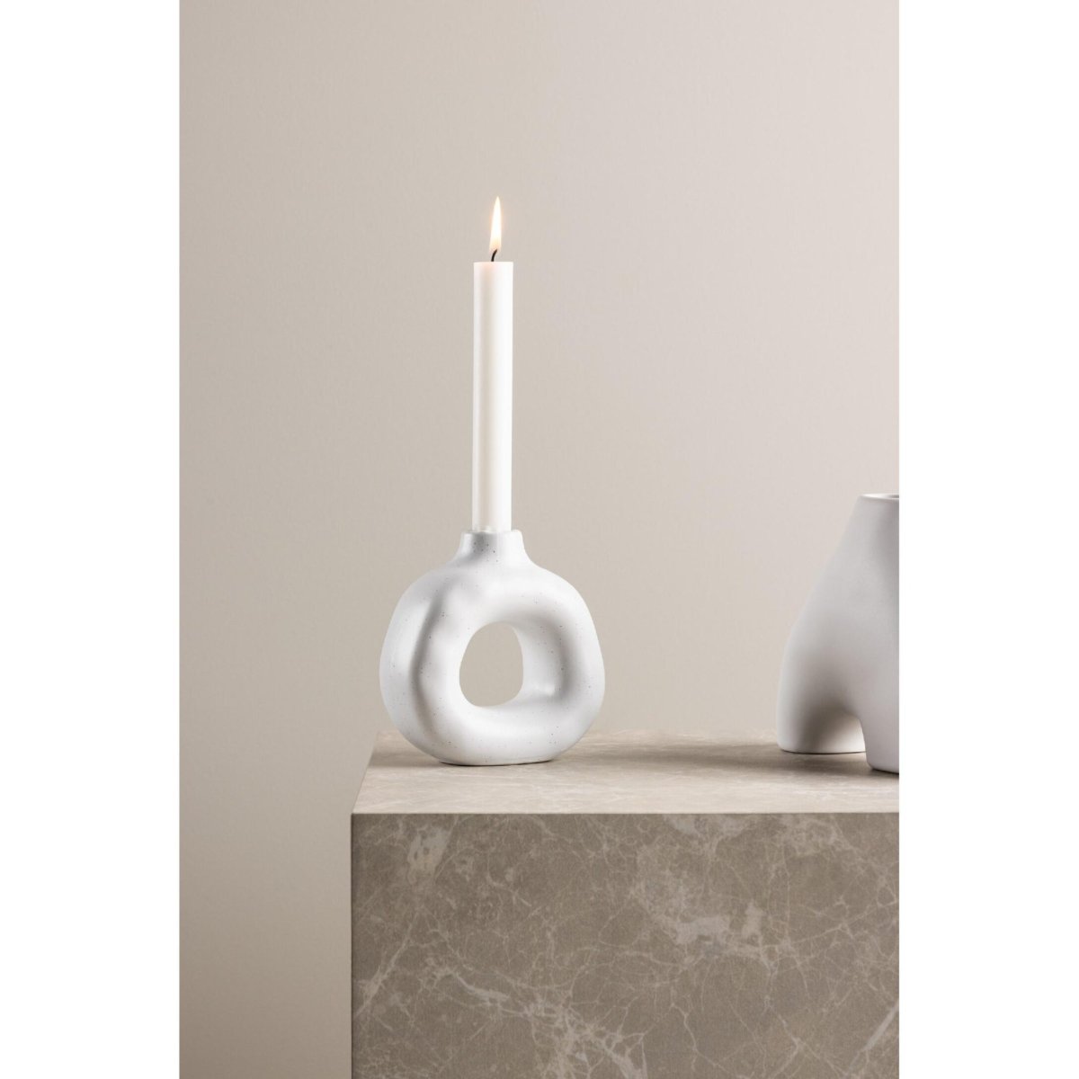 De kaarsenhouder is vervaardigd uit hoogwaardig steengoed (keramiek), bekend om zijn stevige, duurzame kwaliteit en luxe uitstraling. Steengoed is vormvast, voelt solide aan en is beter bestand tegen lichte stoten dan veel fijnere keramieksoorten. Daardoor haal je een woonaccessoire in huis dat lang mooi blijft en geschikt is voor dagelijks gebruik. De gladde afwerking maakt het reinigen eenvoudig: stof en lichte kaarsresten veeg je snel weg met een droge, zachte doek. De heldere witte tint behoudt zijn frisse look, waardoor de kandelaar er elke dag verzorgd en modern uitziet. Zo combineer je in één product design, functionaliteit en een lange levensduur – ideaal voor wie bewuste keuzes wil maken in interieurdecoratie.