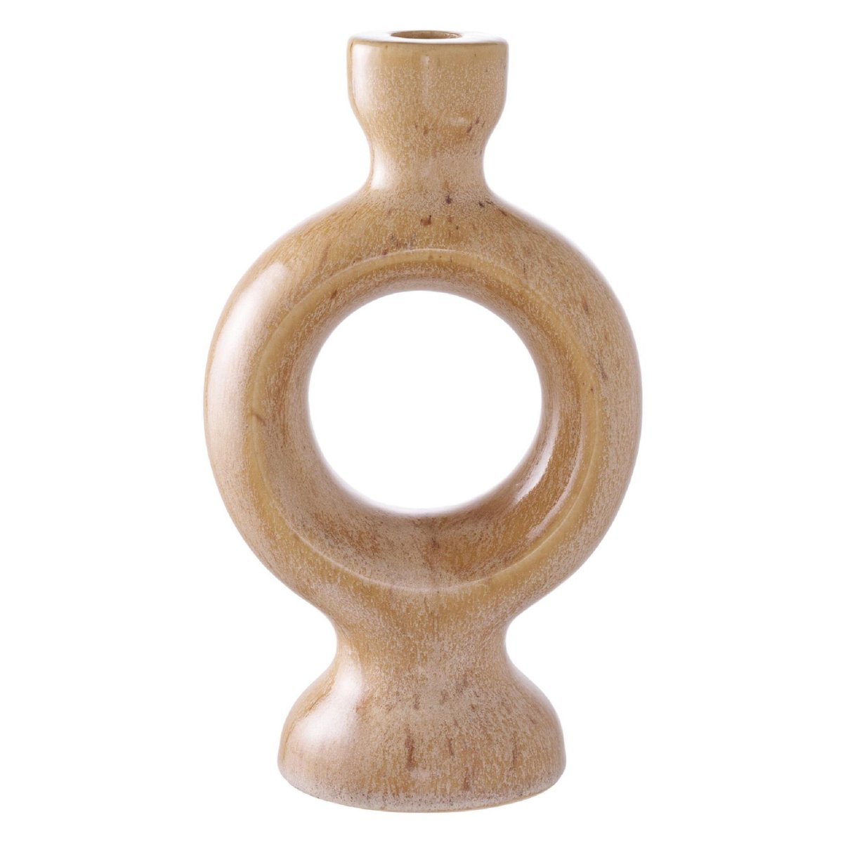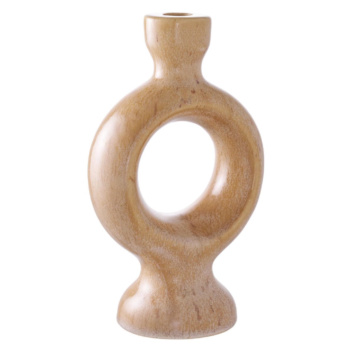 De warme bruine kleur van deze keramieken kandelaar zorgt direct voor diepte, warmte en rust in je woonkamer, eethoek of slaapkamer. Het geglazuurde keramiek met porselein-afwerking geeft een subtiele glans, waardoor de kaarsenhouder een luxe en tijdloze look krijgt. Je combineert dit decoratieve object eenvoudig met natuurlijke materialen zoals hout, linnen en wol, maar ook met zwarte metalen accenten voor een modern contrast. Door de neutrale, rijke bruintint mix je de kandelaar moeiteloos met andere woonaccessoires, zoals vazen, schalen en theelichthouders. Ideaal om gelaagde decoratie te creëren op een salontafel, wandplank of sidetable. Of je nu een minimalistisch, landelijk, Scandinavisch of eclectisch interieur hebt, deze kaarsenhouder brengt samenhang, warme sfeer en stijl in je woonruimte.