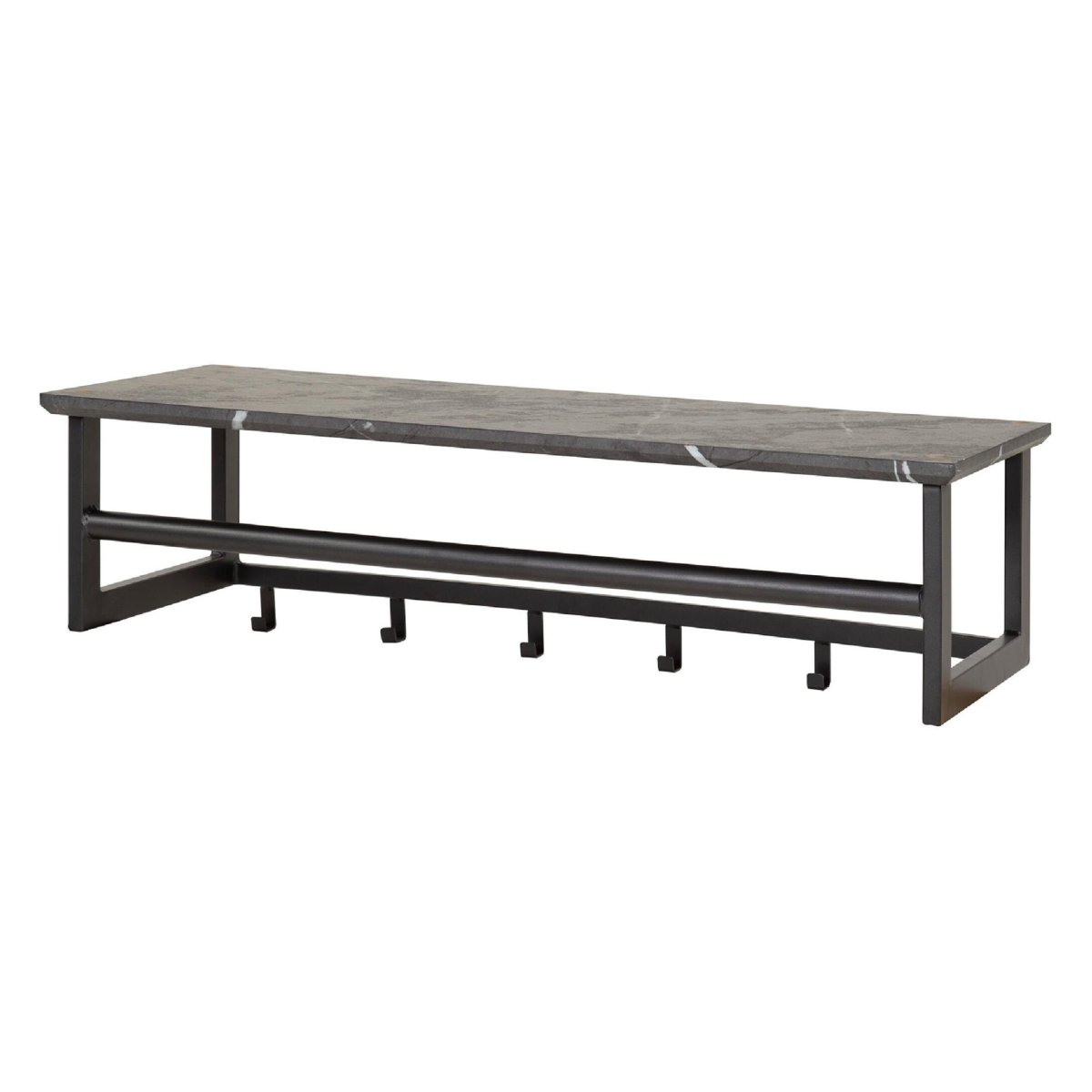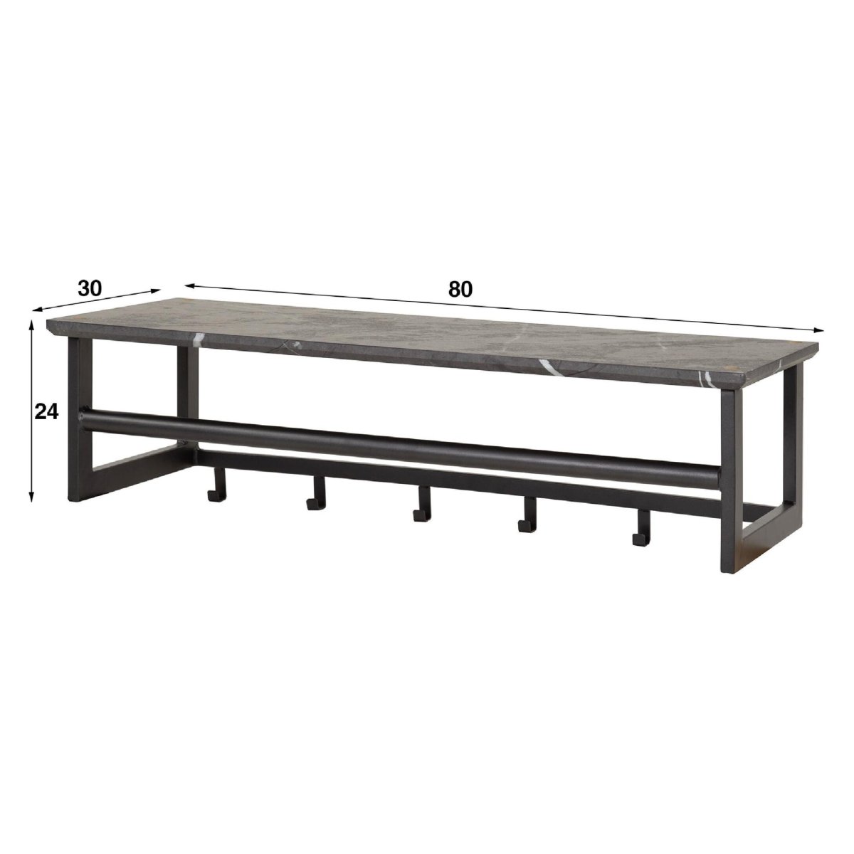 Deze wandkapstok met hoedenplank en roede past dankzij het tijdloze design in uiteenlopende interieurstijlen. De grafietkleurige 3D-melamine plank in natuursteenlook zorgt voor een moderne, strakke uitstraling, terwijl het zwarte metalen frame een stoer, industrieel accent toevoegt. Hierdoor komt dit model goed tot zijn recht in een industrieel, modern, minimalistisch of Scandinavisch interieur.