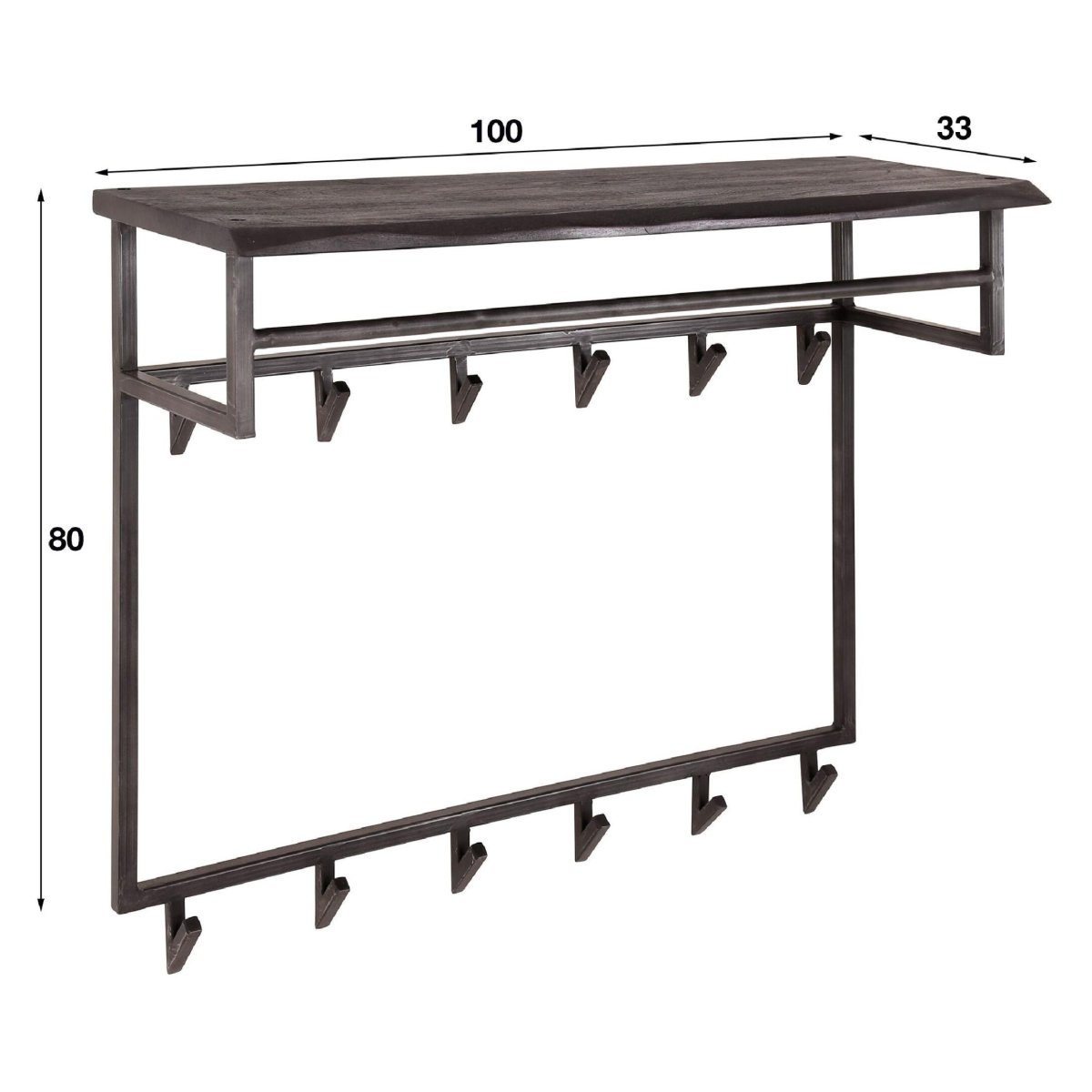 - Materiaal: massief acaciahout met metalen roede en metalen haken