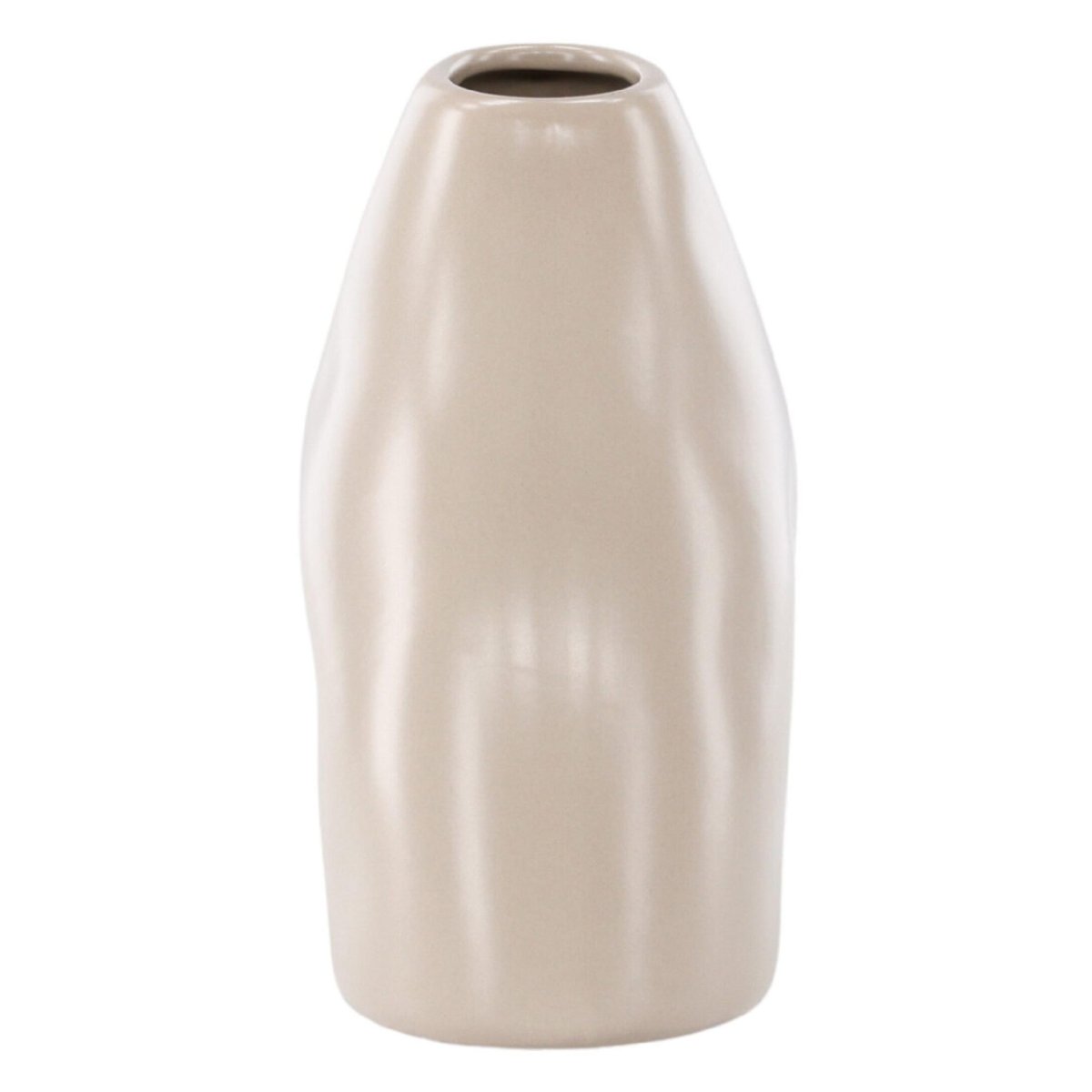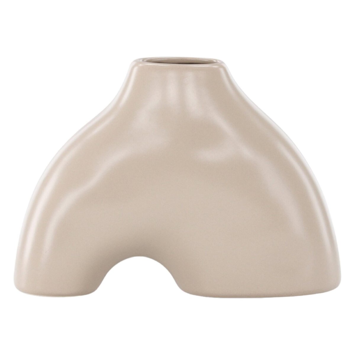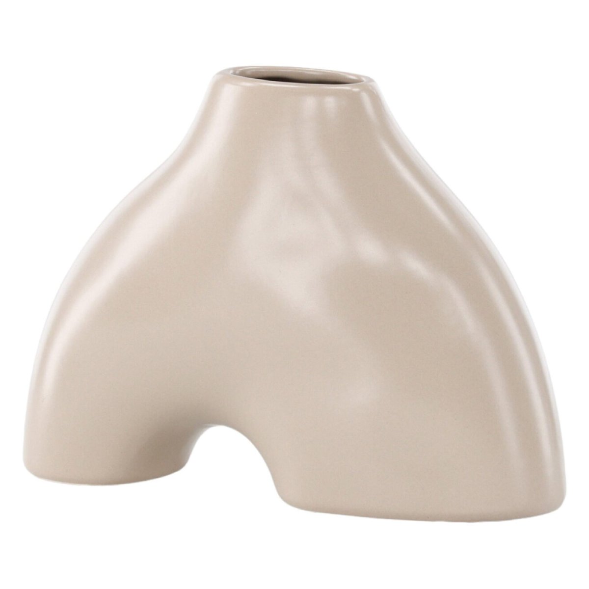 Deze beige keramische vaas is een elegante woonaccessoire die direct sfeer toevoegt aan je tafel, dressoir of wandplank. De organische, unieke vorm en zachte aardetint sluiten naadloos aan bij moderne, Scandinavische en minimalistische interieurs. Dankzij het gebruik van hoogwaardig steengoed keramiek is de vaas zowel decoratief als functioneel inzetbaar voor verse bloemen, takken en droogbloemen. Het compacte formaat maakt dit item een subtiele eyecatcher: opvallend in design, maar rustig in uitstraling. Gebruik de vaas als solitair statement piece of combineer met andere accessoires voor een stijlvol, harmonieus geheel met een tijdloze look.