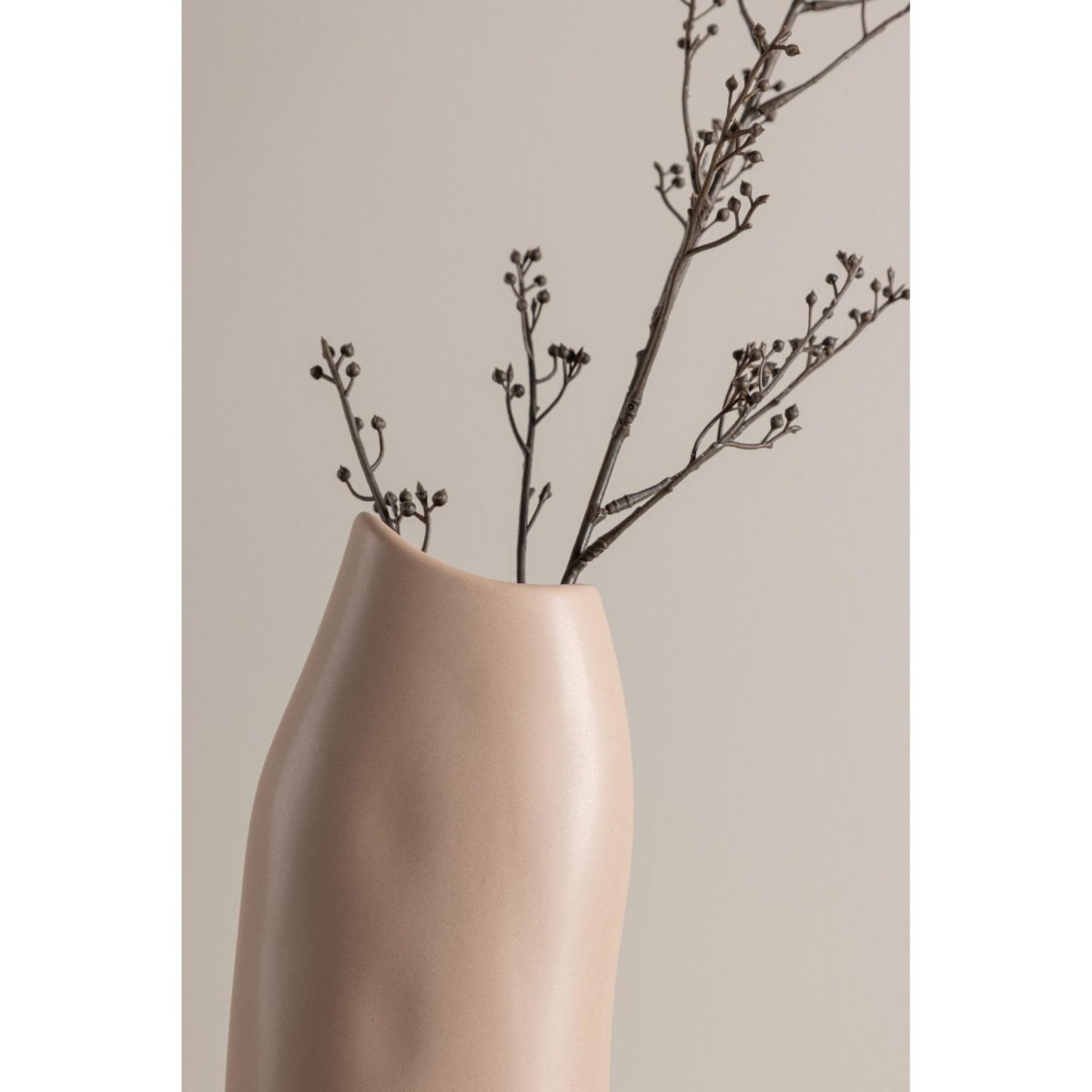 De vaas is vervaardigd uit hoogwaardig keramiek (steengoed), waardoor het oppervlak stevig, solide en toch verfijnd aanvoelt. De kwalitatieve afwerking blijft lang mooi, ook bij dagelijks gebruik. De stabiele basis zorgt ervoor dat je boeket recht en in balans blijft staan, terwijl de vorm de stelen goed ondersteunt en geschikt is voor zowel enkele bloemen als vollere arrangementen. De lichtroze kleurlaag geeft een rustige, luxueuze uitstraling die harmonie brengt in de ruimte in plaats van te overheersen. Daardoor is deze keramische vaas perfect als dagelijks woonaccessoire én als decoratie bij etentjes, feestdagen, fotoshoots of seizoensstyling. De vaas is eenvoudig schoon te maken en behoudt zijn kleur en textuur, zodat je er seizoen na seizoen nieuwe combinaties mee creëert: van weelderige verse bloemen tot minimalistische takken en trendy droogbloemen.