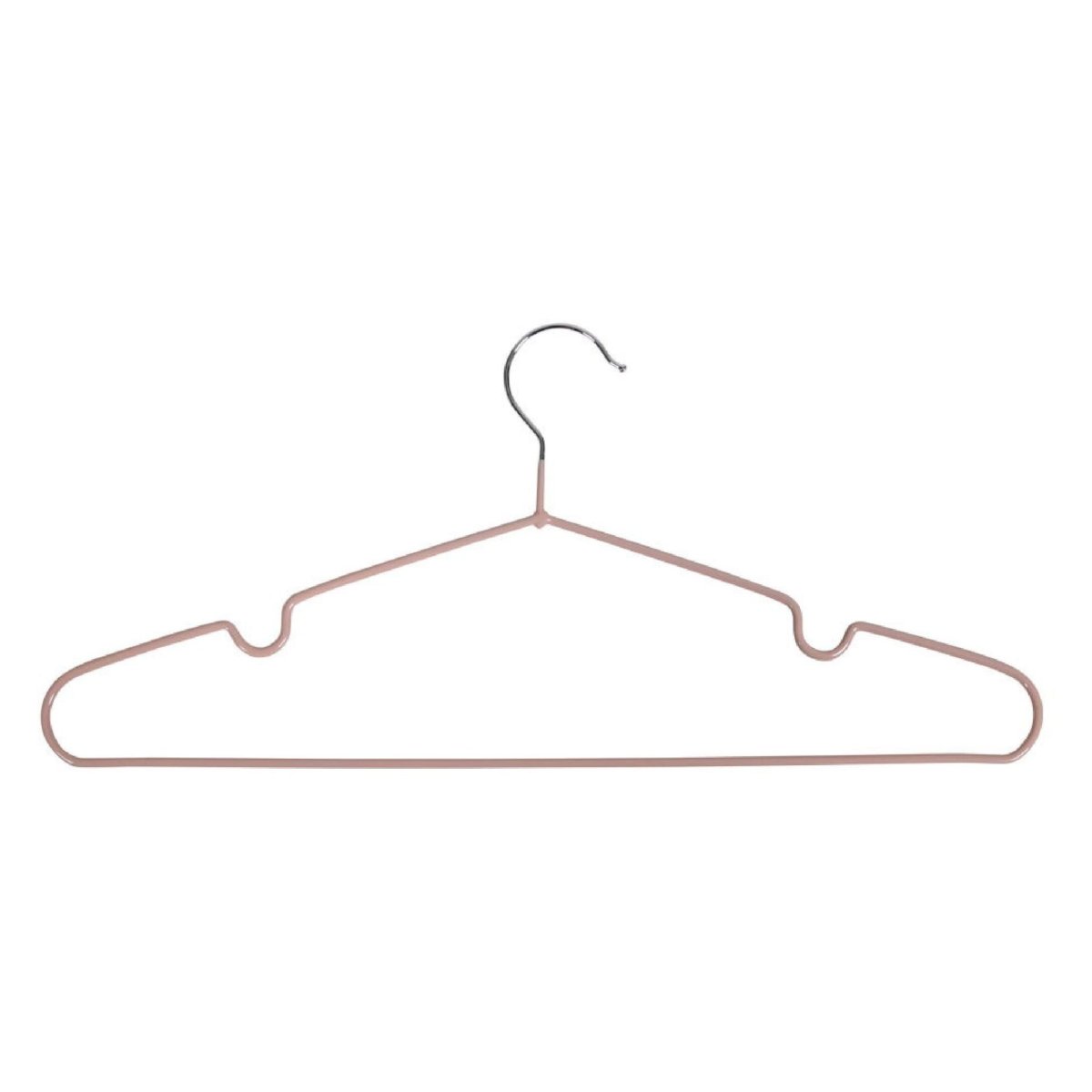 Geef je kledingkast een moderne, uniforme upgrade met deze set van 10 slanke metalen kledinghangers in een stijlvolle roze coating. De sterke metalen kern biedt betrouwbare ondersteuning voor alledaagse kleding zoals shirts, blouses, jurken, overhemden en lichte jassen, terwijl het dunne profiel maximaal ruimte bespaart in je kledingkast, op je kledingrek of kapstok. De gladde afwerking helpt kreukvorming te beperken en zorgt voor een nette, georganiseerde garderobe. Perfect voor iedereen die kleding overzichtelijk wil ophangen, sorteren en presenteren in slaapkamer, hal, inloopkast of bij een open kledingrek.