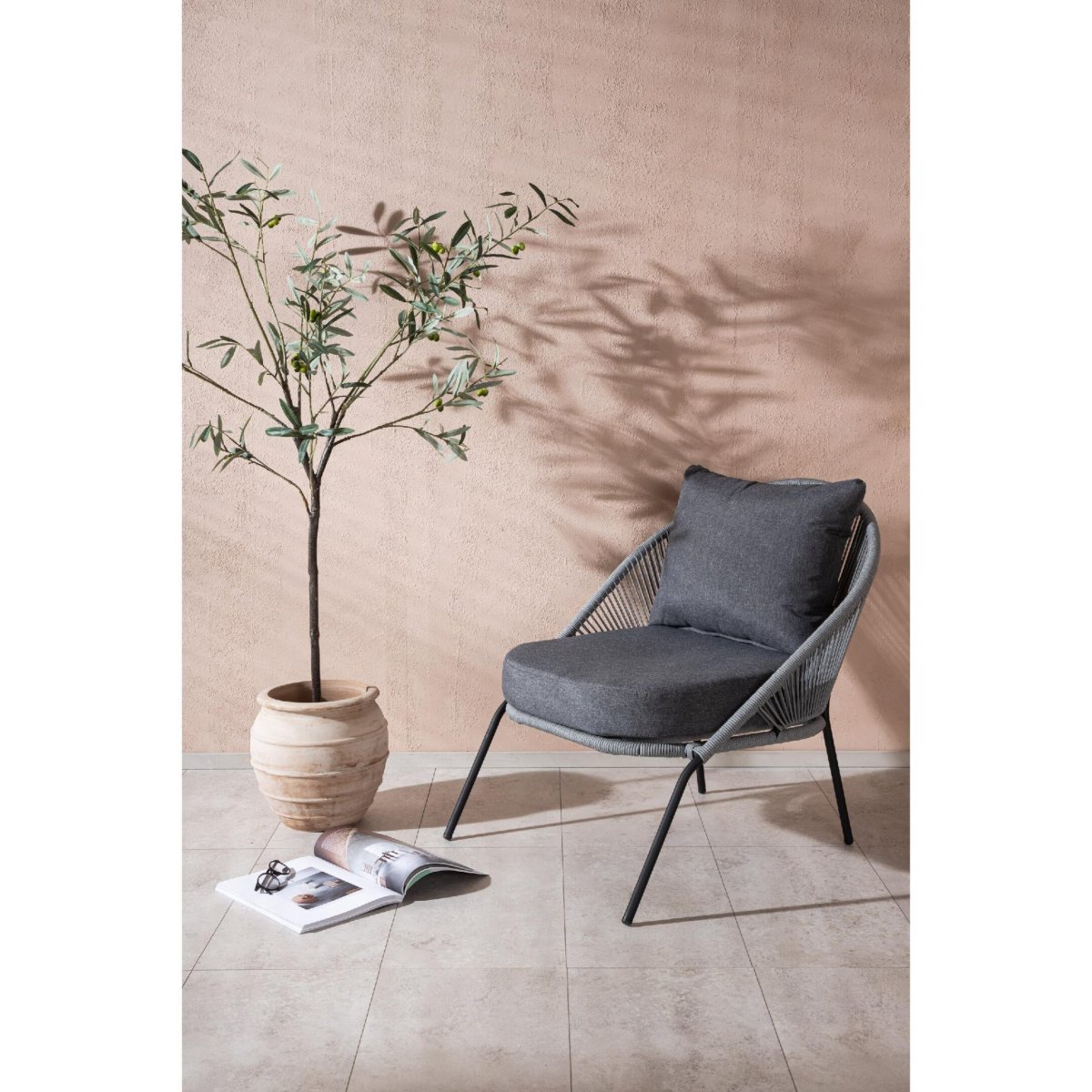 Dankzij het compacte maar royale silhouet en de neutrale kleurcombinatie past deze buitenloungestoel moeiteloos op zowel een ruim terras als een klein balkon. Combineer de stoel met een lage bijzettafel, een buitentapijt en sfeervolle verlichting voor een complete loungehoek. De strakke lijnen maken ‘m heel geschikt voor moderne, industriële en Scandinavische tuinen, terwijl het gevlochten rope een warme, textuurvolle uitstraling toevoegt. Gebruik de stoel als comfortabele leesplek in de zon, als extra zitplaats bij een loungeset of als eyecatcher in een hoek van je patio. Met deze loungestoel creëer je in een handomdraai een stijlvolle en comfortabele zitplek voor elk relaxmoment buiten.