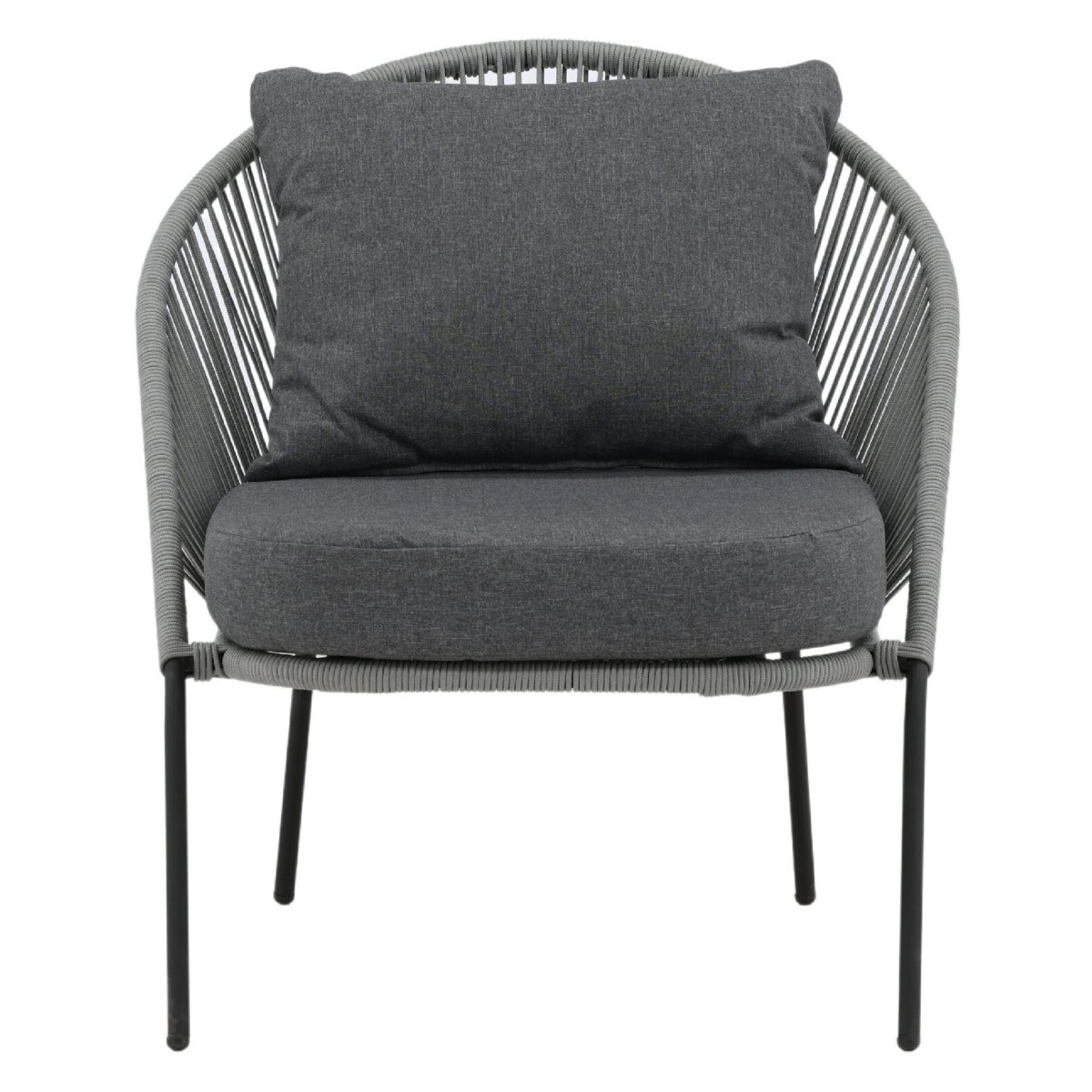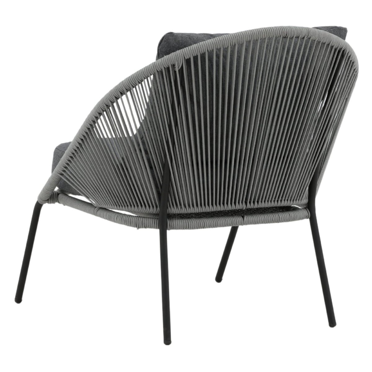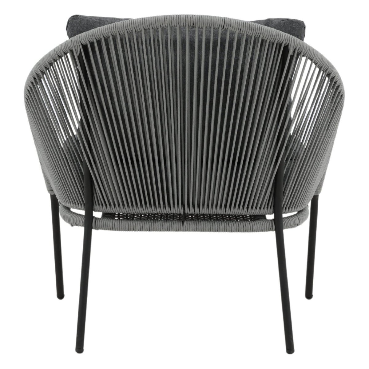 De extra diepe zit en brede kuip van deze outdoor loungestoel nodigen direct uit om lang en ontspannen te blijven zitten. Het meegeleverde kussen biedt zachte ondersteuning, terwijl het gevlochten rope subtiel meeveert voor ergonomisch comfort, zonder dat je wegzakt. Daardoor blijft de stoel comfortabel, óók als je urenlang wilt loungen. Het open, luchtige rope-weefsel ventileert op warme zomerdagen en droogt snel na een regenbui, ideaal voor gebruik in de tuin of op het balkon. De combinatie van grijs rope en een zwart stalen frame zorgt voor een moderne, tijdloze look die prachtig matcht met strakke loungesets, houten vlonders, minimalistische patio’s of knusse balkons. Zo creëer je eenvoudig een comfortabele loungehoek voor je ochtendkoffie, je favoriete boek of een gezellige borrel met vrienden.