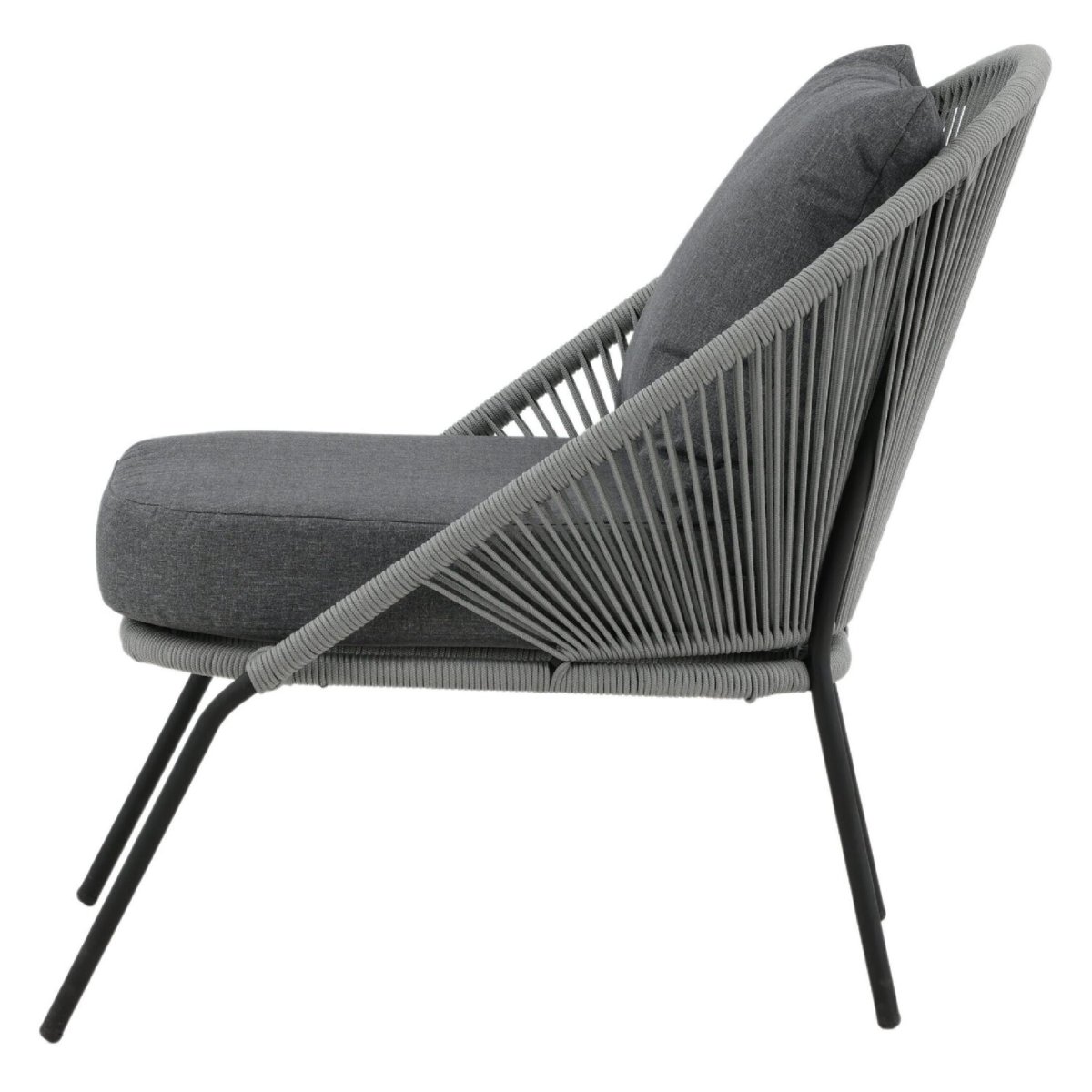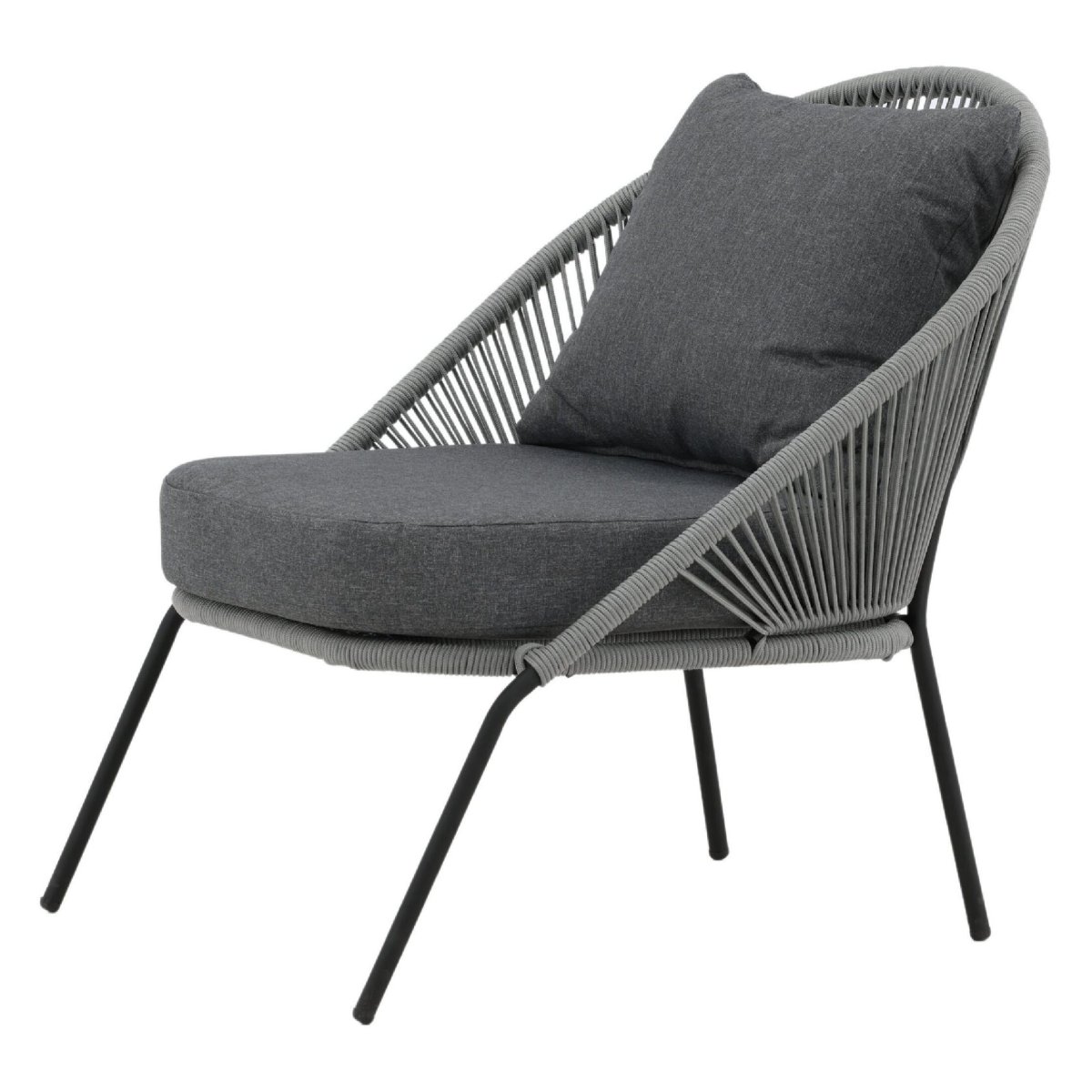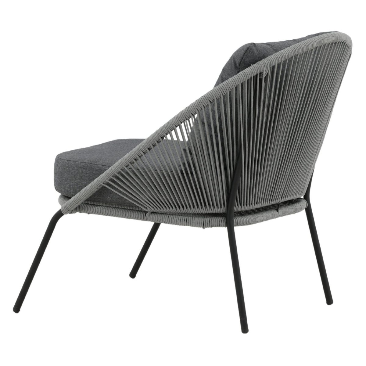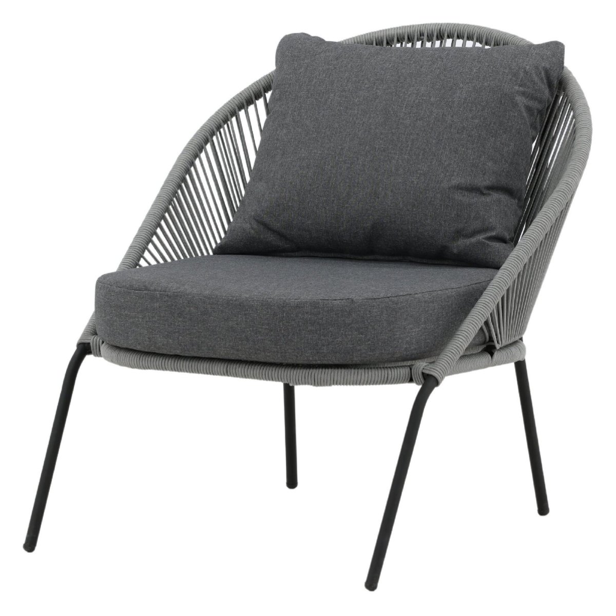 De extra diepe zit en brede kuip van deze outdoor loungestoel nodigen direct uit om lang en ontspannen te blijven zitten. Het meegeleverde kussen biedt zachte ondersteuning, terwijl het gevlochten rope subtiel meeveert voor ergonomisch comfort, zonder dat je wegzakt. Daardoor blijft de stoel comfortabel, óók als je urenlang wilt loungen. Het open, luchtige rope-weefsel ventileert op warme zomerdagen en droogt snel na een regenbui, ideaal voor gebruik in de tuin of op het balkon. De combinatie van grijs rope en een zwart stalen frame zorgt voor een moderne, tijdloze look die prachtig matcht met strakke loungesets, houten vlonders, minimalistische patio’s of knusse balkons. Zo creëer je eenvoudig een comfortabele loungehoek voor je ochtendkoffie, je favoriete boek of een gezellige borrel met vrienden.