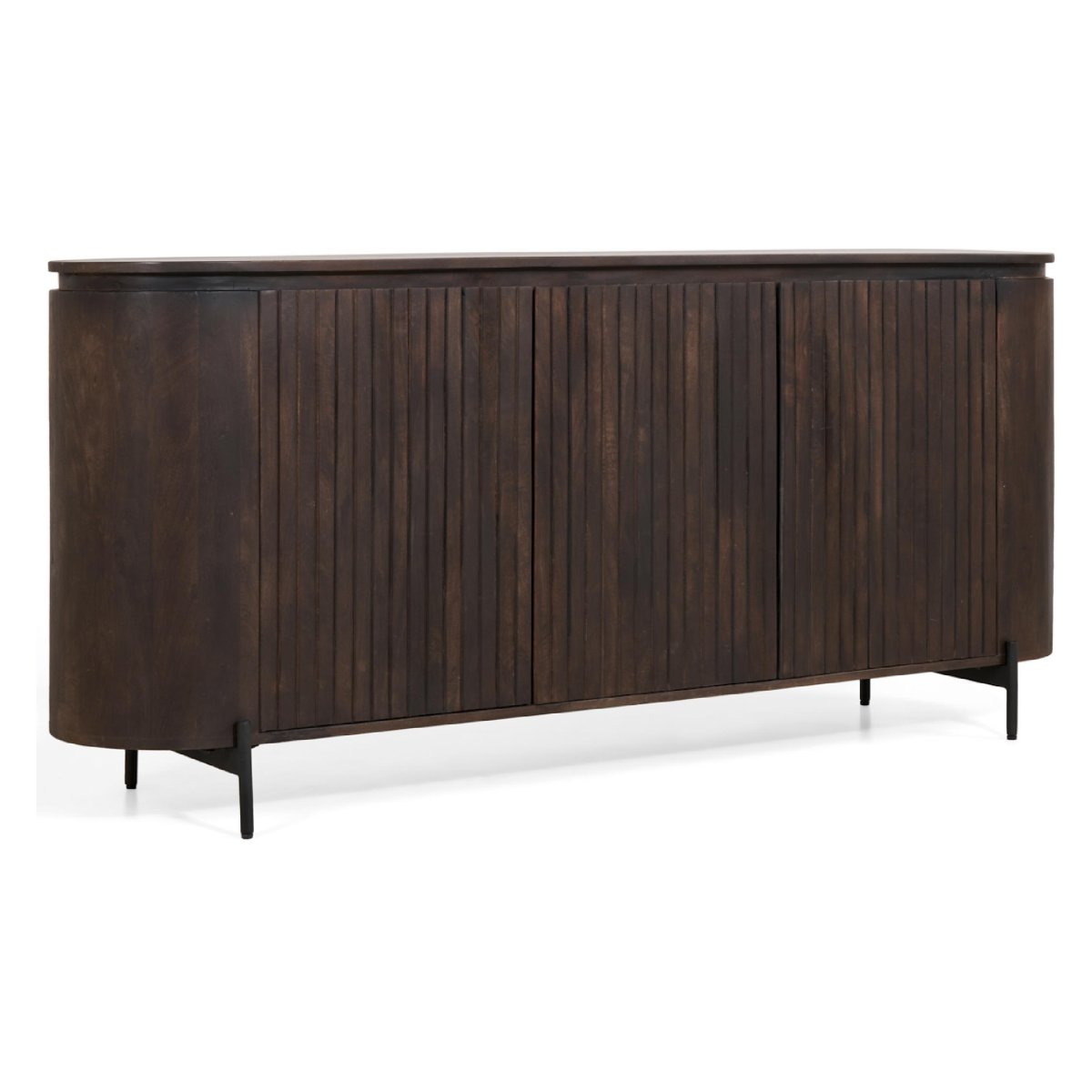 Dit donkerbruine mangohouten dressoir combineert luxe design, veel opbergruimte en warme uitstraling in één meubel. Met 3 deuren en een royale breedte van 180 cm is deze opbergkast ideaal voor de woonkamer, hal of eetkamer. De zichtbare houtnerf, het latjesfront en de zacht afgeronde zijkanten geven het dressoir een chique, tijdloze look. Dankzij het sterke, duurzame mangohout haal je een stabiele, hoogwaardige kast in huis die jarenlang mooi blijft. Perfect te gebruiken als tv-meubel, servieskast of stijlvolle opbergkast tegen een lange wand. Zoek je een donkerbruin dressoir met designlook, veel kastruimte en een warme, hotel chique uitstraling? Dan is dit model met 3 deuren en strakke afwerking een perfecte keuze.
