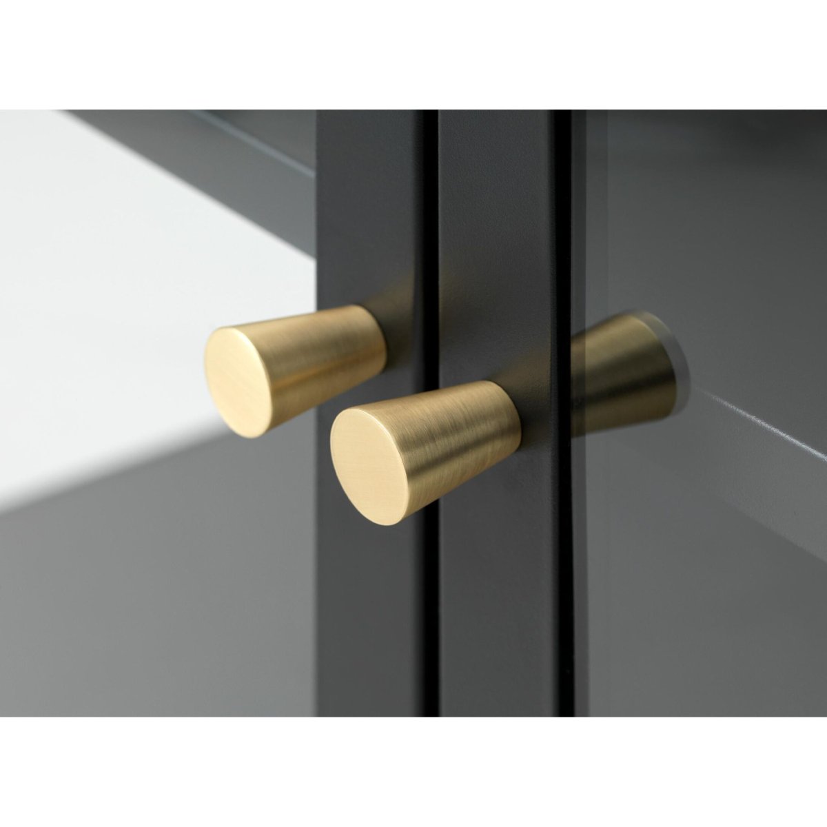 Dit zwarte dressoir in volledig metaal ademt pure industriële stijl. Het diepe, matte zwart van de kast vormt een stoere basis, terwijl de glazen deur zorgt voor een lichte, transparante uitstraling. De rechte lijnen, smalle poten en het rechthoekige silhouet sluiten naadloos aan bij moderne, minimalistische en urban interieurs. De subtiele goudkleurige metalen handgreep voegt een warm, luxe accent toe en creëert een mooi contrast met het zwarte metaal. Door het heldere, geharde glas presenteer je je mooiste servies, woondecoratie of boeken als in een compacte vitrinekast, zonder dat de ruimte druk oogt. Zo functioneert dit dressoir als design sideboard, vitrine en opbergkast in één – ideaal voor woonkamer, eetkamer, hal of loft.