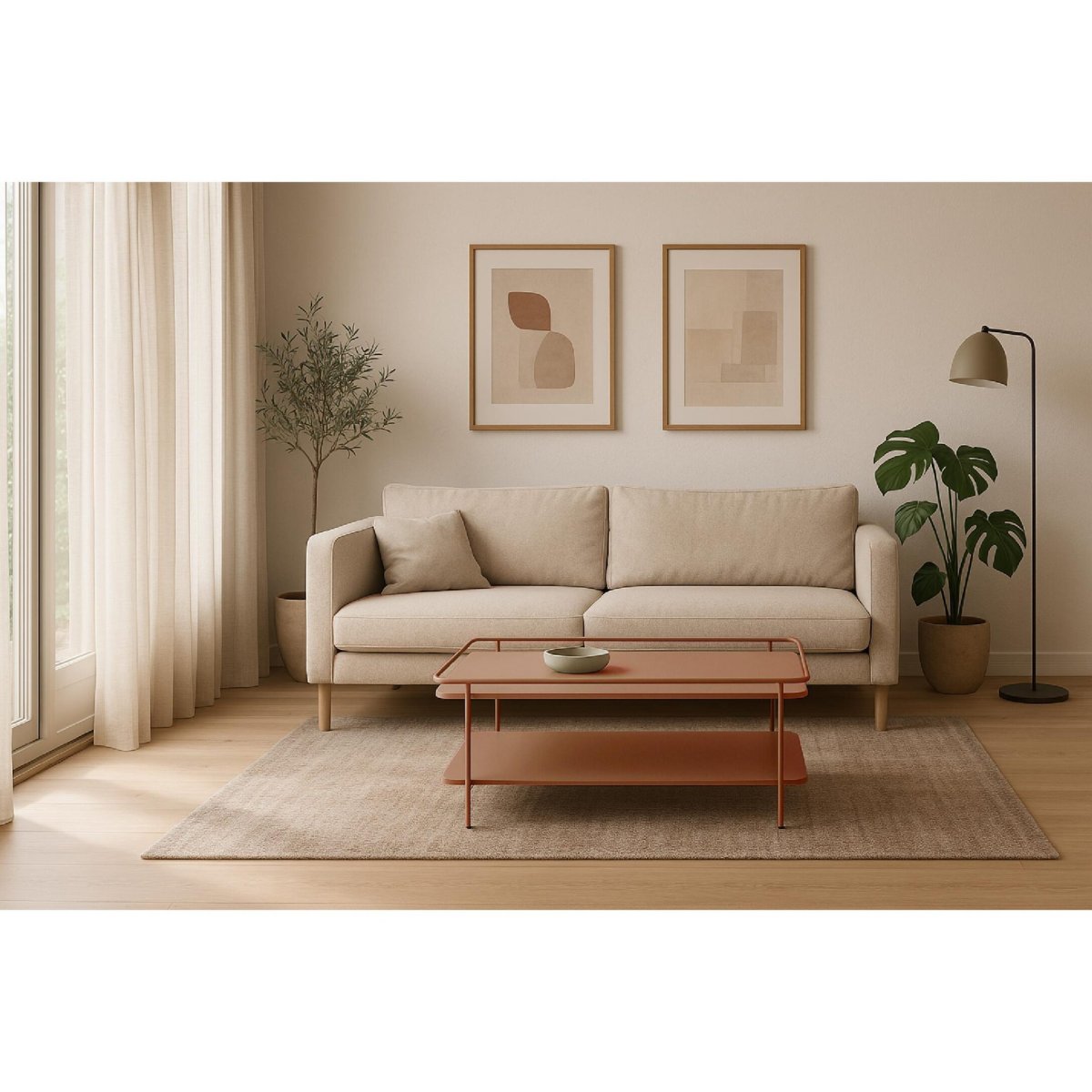 De diepe terracotta tint van deze metalen salontafel brengt direct warmte en sfeer in je woonkamer, zonder de ruimte te domineren. Daardoor laat deze rechthoekige koffietafel zich makkelijk combineren met een modern, Scandinavisch, industrieel of eclectisch interieur. Het lage, slanke silhouet houdt de zithoek ruimtelijk en luchtig, terwijl de rechthoekige vorm perfect aansluit op een rechte bank, hoekbank of modulaire zithoek. Het volledig metalen design oogt strak, grafisch en tijdloos, zodat je accessoires zoals vazen, koffietafelboeken, schalen en kaarsen extra mooi uitkomen. De heldere lijnen, de vier poten en de twee bladen vormen samen een rustig, uitgebalanceerd geheel. Zo haal je een salontafel in huis die stijl, functionaliteit en dagelijks gebruiksgemak moeiteloos combineert.