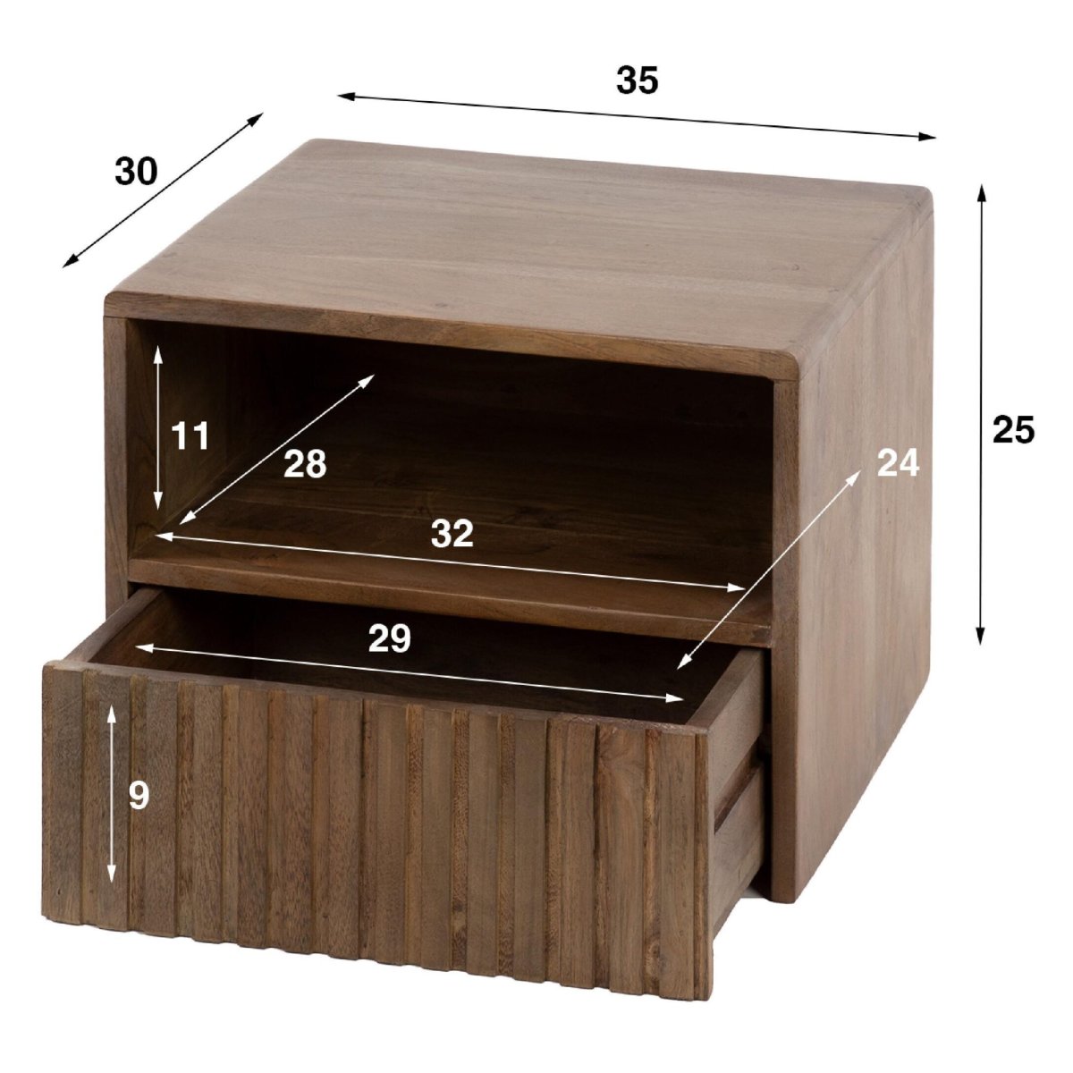 Nest of Nora Nachtkastje Finn – Zwevend met lade en open vak – Massief acaciahout – Bruin