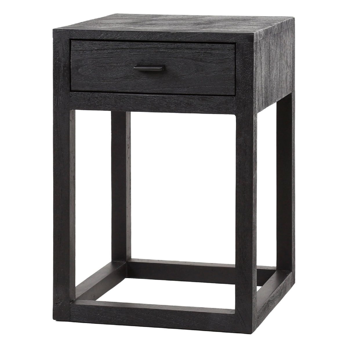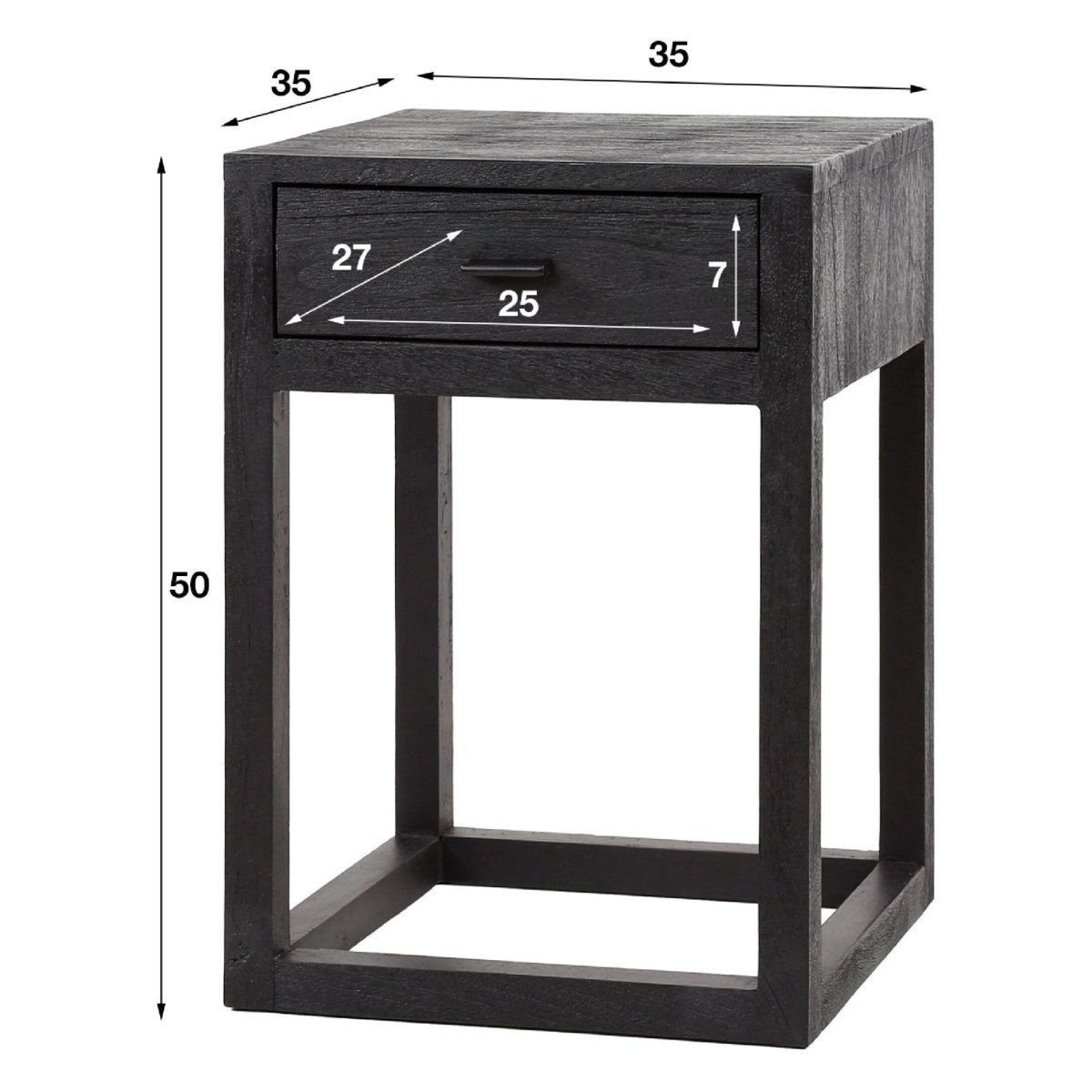 Dit moderne nachtkastje van massief zwart acaciahout is een compacte, maar zeer stijlvolle blikvanger naast je bed. Dankzij het tijdloze, vierkante design past dit houten nachtkastje moeiteloos in een modern, industrieel of hotel chique interieur. De lade biedt praktische opbergruimte voor spullen die je graag binnen handbereik hebt, terwijl het glad geschuurde oppervlak zorgt voor een strak en rustig geheel. De natuurlijke houtnerf blijft subtiel zichtbaar, waardoor elk nachtkastje uniek is en een warme, luxe uitstraling aan je slaapkamer geeft. Zo haal je een decoratief én functioneel nachtkastje in huis dat zowel qua kwaliteit als design opvalt.