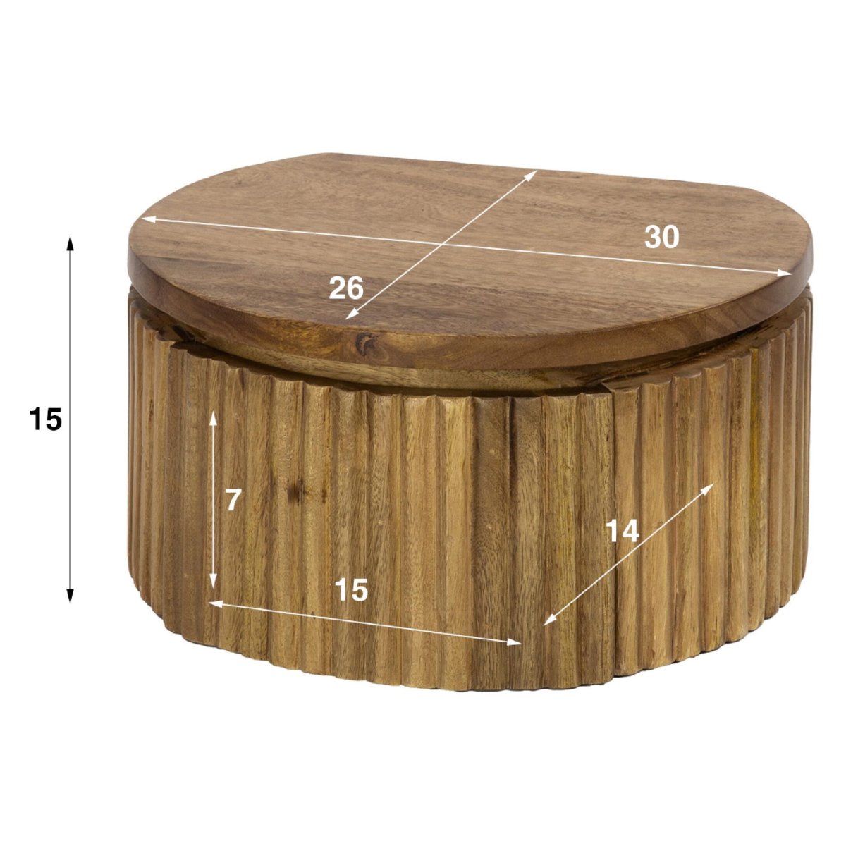 Het zwevende nachtkastje is vervaardigd uit massief mangohout, een sterke en duurzame houtsoort met een rijke, natuurlijke uitstraling. De subtiele zandkleurige finish accentueert de houtnerf en natuurlijke kleurnuances, waardoor ieder nachtkastje uniek is. Het fijne verticale lijnenspel rondom het ronde kastje geeft extra diepte, textuur en een luxe uitstraling. Hierdoor functioneert dit wandnachtkastje niet alleen als praktisch nachtkastje, maar ook als decoratief statement aan de muur. Combineer het met een stijlvolle wandlamp, minimalistische wekker, geurkaars of een klein plantje en je creëert direct een sfeervol hoekje naast je bed. Het natuurlijke mangohout brengt warmte en zachtheid in je interieur, zonder druk of onrustig te ogen.