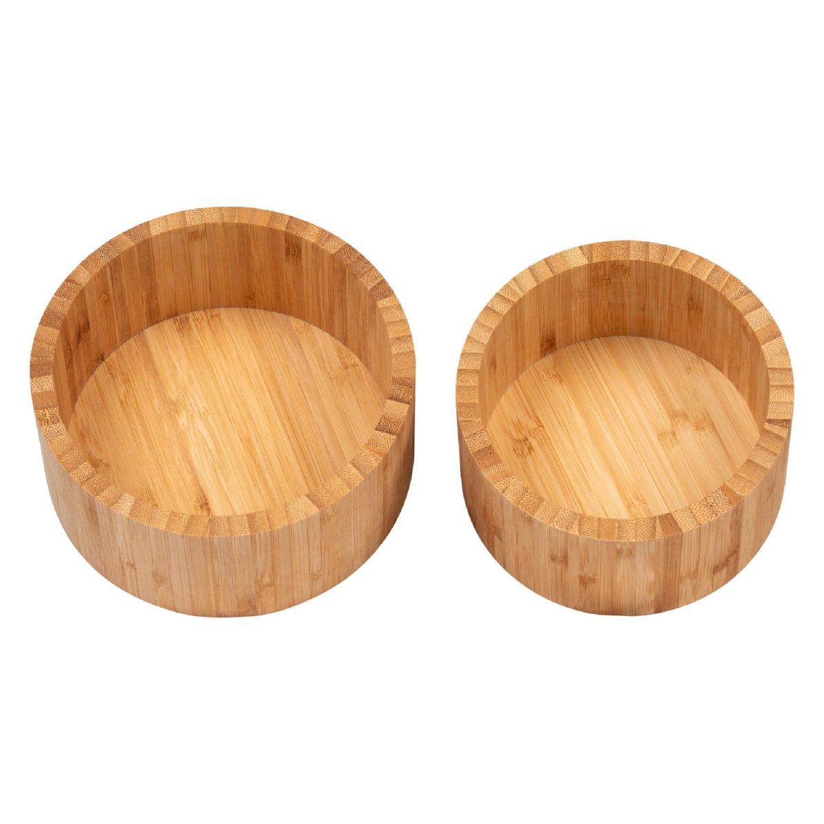 Deze bamboe opbergset bestaat uit twee ronde boxen in verschillende diameters, ideaal om kleine items snel te sorteren en structureren. De hoogte van 8 cm is bewust compact gehouden zodat lades overzichtelijk blijven en open planken netjes en rustig ogen. Gebruik de kleinere opbergbox voor sieraden, wattenschijfjes, paperclips of haaraccessoires, en de grotere bewaardoos voor make-up, opladers, theezakjes of kleine keukenspullen. De ronde vorm oogt zacht en past eenvoudig tussen andere woonaccessoires, van glazen potten tot keramieken schaaltjes. Je kunt de boxen samen als set stylen of los van elkaar plaatsen om visuele rust te creëren in verschillende ruimtes. Zo geef je elke categorie een vaste plek, benut je de beschikbare ruimte optimaal en voorkom je rondslingerende spullen in huis.