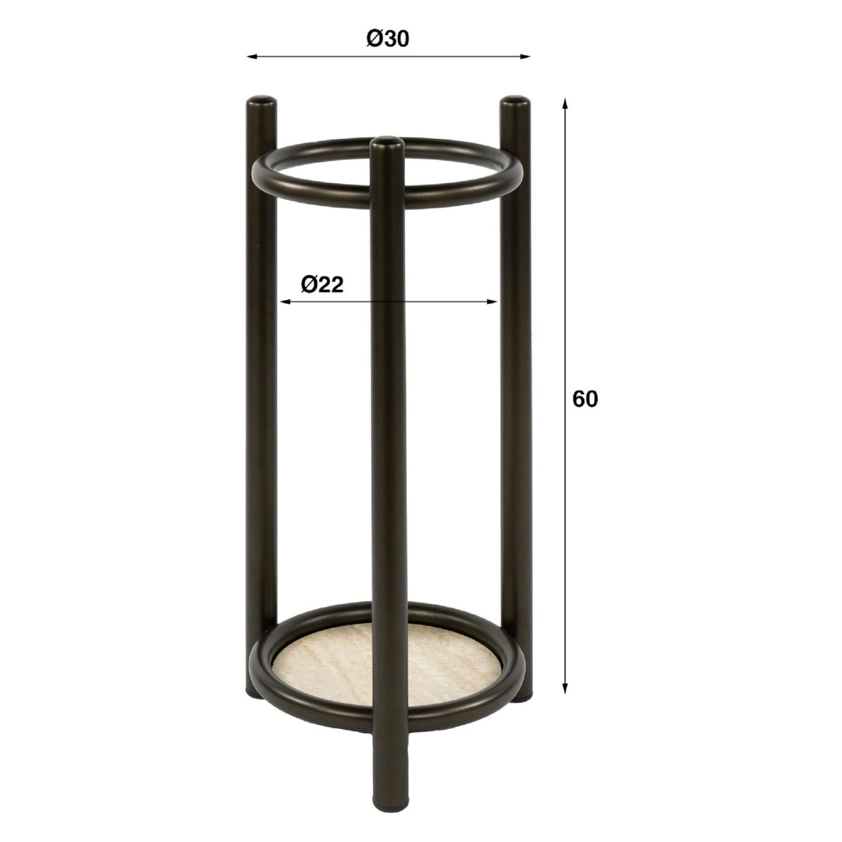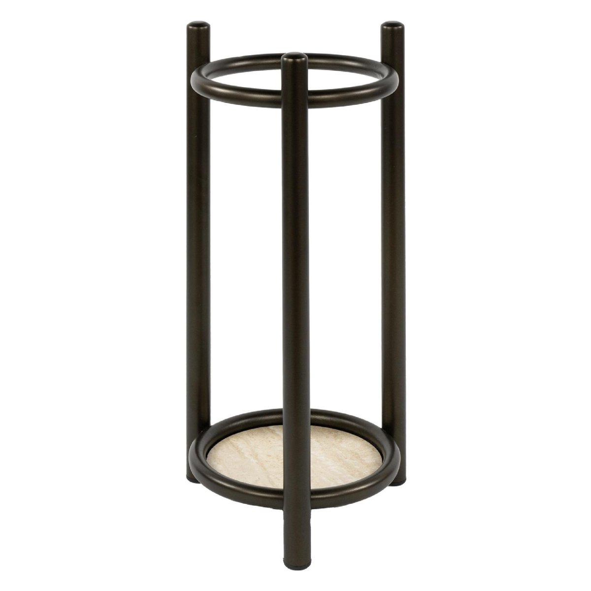 Deze design paraplubak is meer dan alleen een functionele oplossing voor het opbergen van natte paraplu’s. Het ronde, open stalen frame geeft de parapluhouder een luchtige en moderne uitstraling, waardoor je hal of gang ruimtelijk en uitnodigend oogt. De poedercoating in drift brown zorgt voor een matte, luxe finish die perfect combineert met houten meubels, zwarte details, metalen accenten en neutrale tinten.