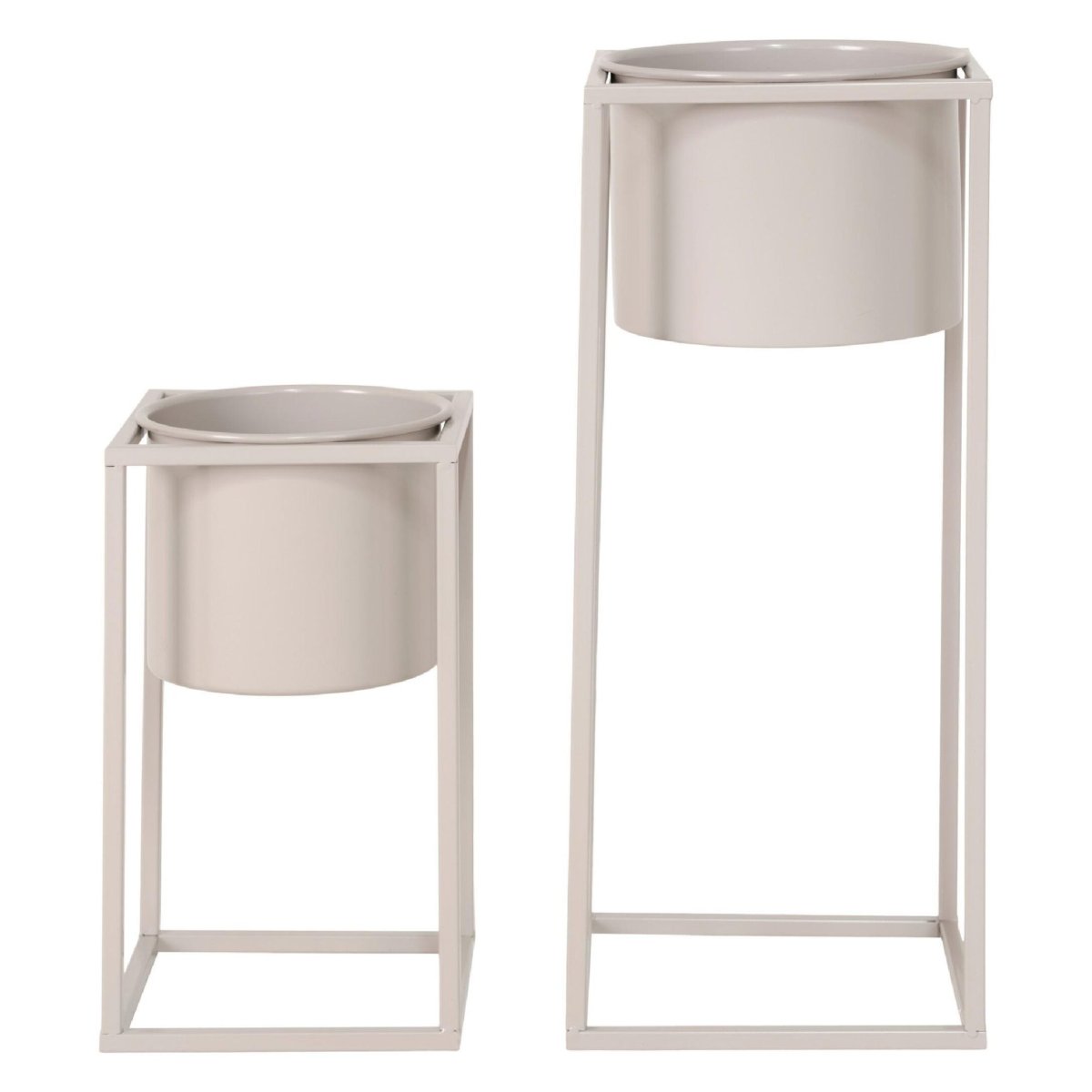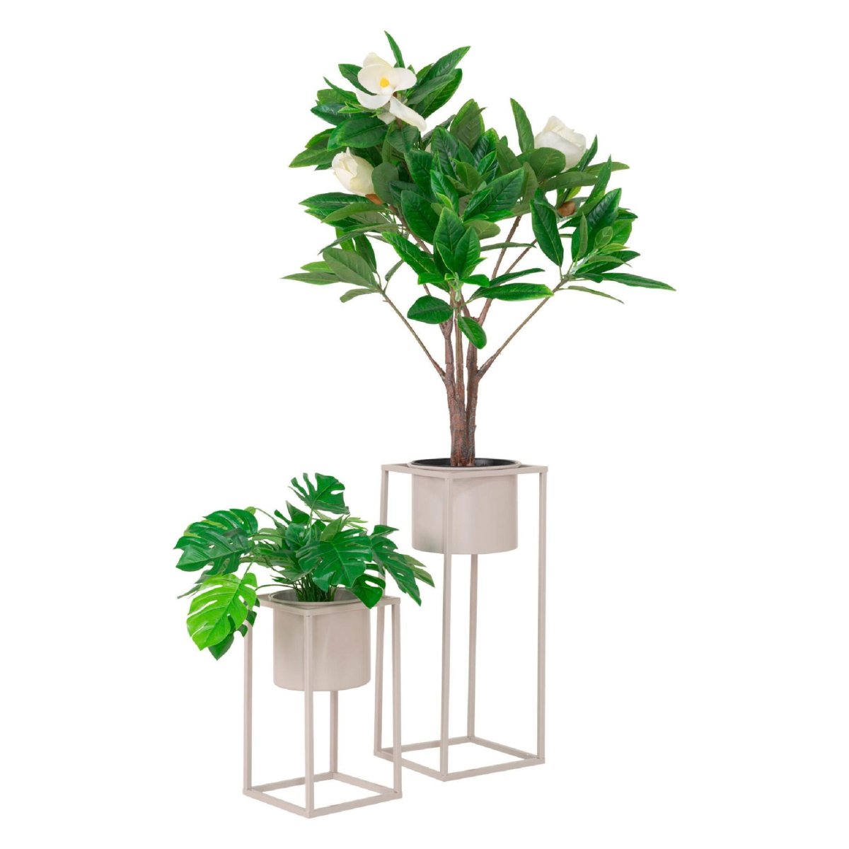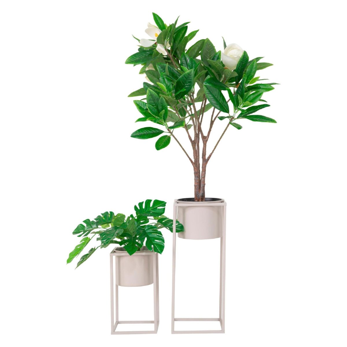 Deze set van twee plantenstandaarden tilt jouw kamerplanten letterlijk én figuurlijk naar een hoger niveau. De slanke, stalen frames in beigegrijs geven elke bloempot een moderne, minimalistische en rustige uitstraling. Door de twee verschillende hoogtes creëer je in één oogopslag speelse gelaagdheid in je interieur, van woonkamer en eetkamer tot slaapkamer of thuiswerkplek. Dankzij het tijdloze design en de duurzame materialen is deze plantenstandaard set ideaal voor iedereen die planten stijlvol wil presenteren zonder veel vloeroppervlak kwijt te zijn. De ronde vormen en neutrale kleur maken de standaarden extra veelzijdig: perfect in een modern, Scandinavisch of industrieel interieur als plantenhouder, bloempot standaard of decoratieve plant display.