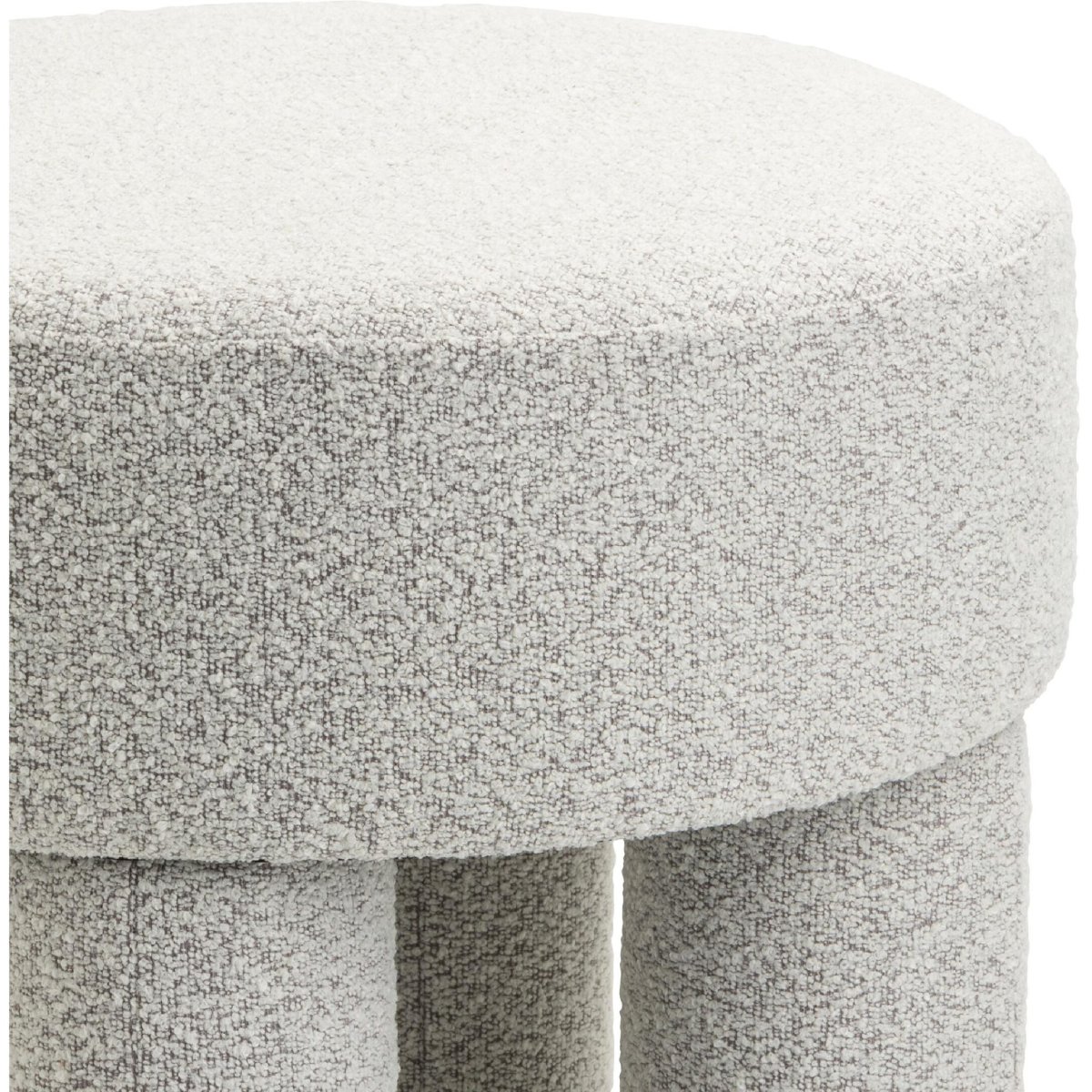 Dankzij de ronde vorm en het compacte formaat is deze poef multifunctioneel inzetbaar in huis. Gebruik hem als voetenbank bij de bank of fauteuil om na een lange dag heerlijk te ontspannen. Zet hem in als extra zitplaats wanneer je visite hebt, of leg er een dienblad op en je creëert in een handomdraai een stabiel bijzettafeltje voor boeken, tijdschriften, een kop koffie of sfeervolle kaarsen. Met een diameter van 50 cm en een hoogte van 40 cm schuif je de poef gemakkelijk voor de bank, naast een loungechair of aan het voeteneinde van je bed. In een kinderkamer zorgt de zachte bouclé stof voor een veilige, knusse speelhoek, terwijl hij in de hal, thuiswerkplek of leeshoek een stijlvol, ruimtebesparend accent vormt.