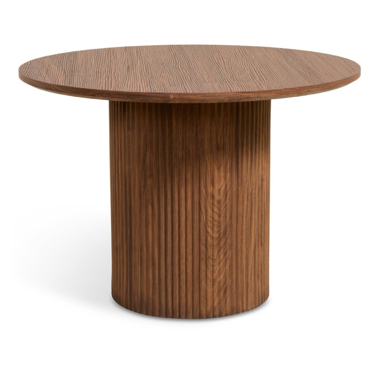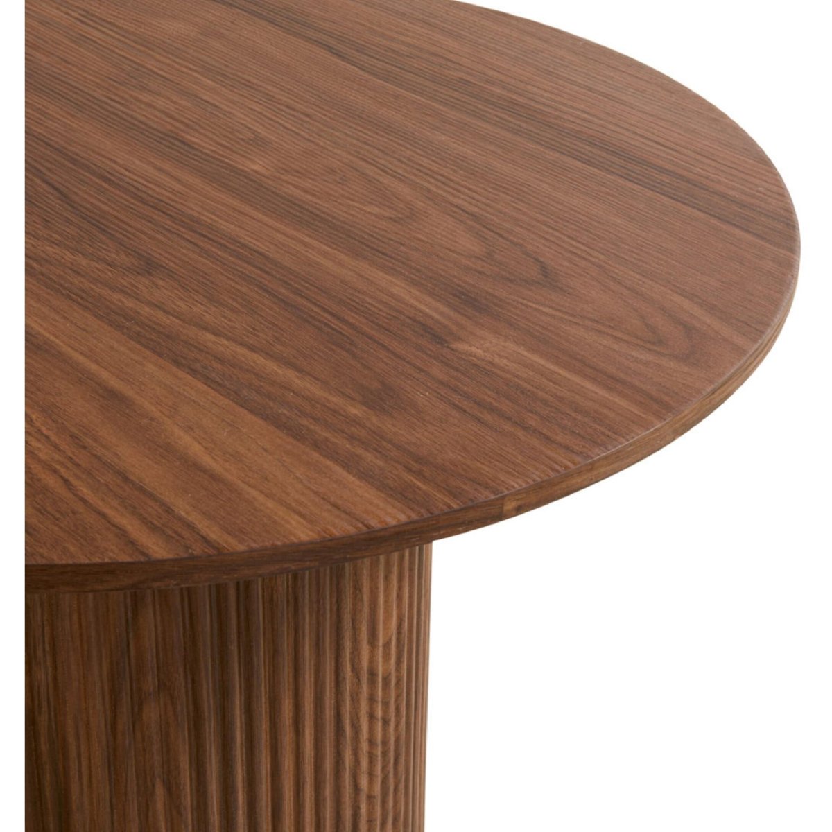 Deze ronde bijzettafel met een diameter van 60 cm combineert een warme walnootlook met een strak, modern design. Het ronde tafelblad met walnoot fineer oogt luxe en verfijnd, terwijl de geribbelde middenpoot direct karakter en sfeer toevoegt aan je zithoek. Dankzij het compacte formaat past deze bijzettafel perfect naast de bank, als kleine salontafel in een leeshoek of als stijlvol statement piece met decoratie. De tafel is gemaakt van stevig MDF met walnoot fineer, voelt solide aan en sluit moeiteloos aan bij moderne, Scandinavische en hotel chique interieurs. Ideaal als salontafelvervanger in kleinere woonkamers of als extra tafeltje voor meer sfeer en functionaliteit.