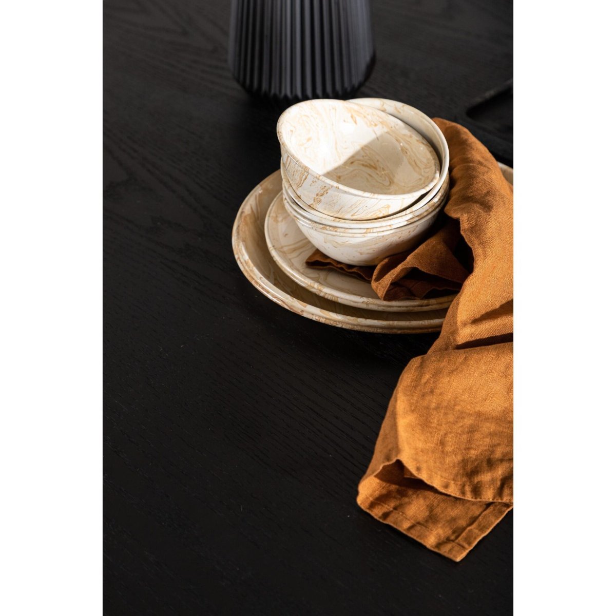 Door de ronde vorm beweeg je gemakkelijk om de tafel heen en heeft iedereen evenveel zitruimte—ideaal voor lange gesprekken, shared dining en gezellige avonden met vrienden of familie. De gecentreerde poten voorkomen botsende stoelpoten en creëren extra beenruimte, wat deze ronde design tafel zeer geschikt maakt voor compact wonen en kleinere eethoeken. Het formaat is perfect voor dagelijks gebruik met meerdere personen, zonder de kamer te domineren. De zachte, afgeronde rand van het blad voelt prettig aan en versterkt de vriendelijke, organische vormentaal. Dankzij de zwarte kleur laat deze ronde eettafel zich eenvoudig combineren met lichte of donkere vloeren, metalen accenten, houten meubels en natuurlijke materialen zoals wol, linnen en rotan.