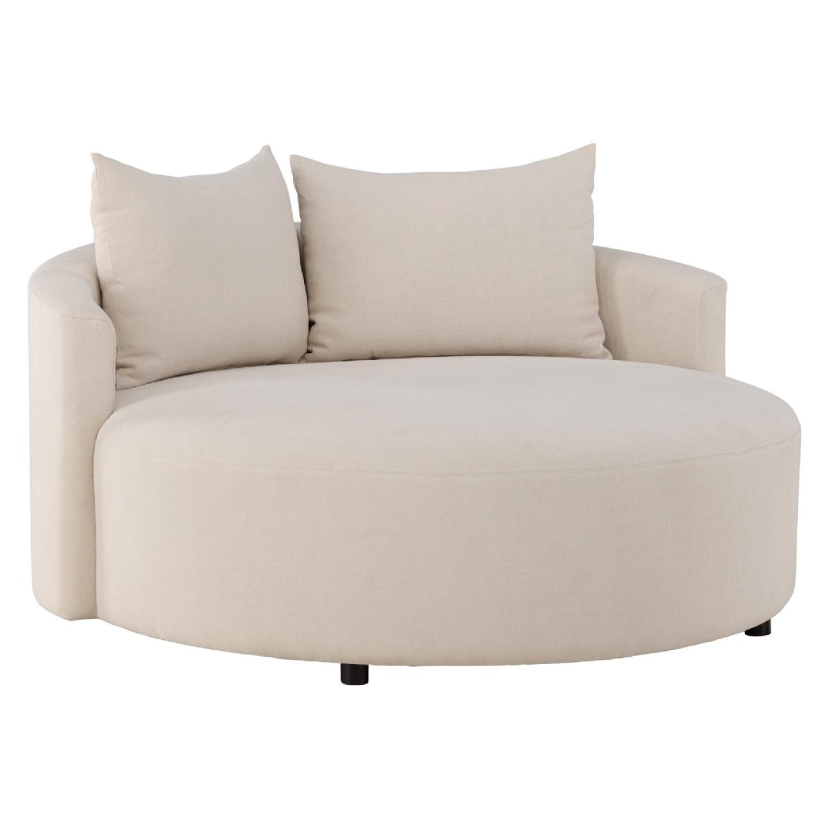 De ronde vorm van deze designbank creëert een natuurlijke kring waarin iedereen elkaar goed kan aankijken, zonder storende hoeken of onderbrekingen. Zo voelt je zithoek open, gezellig en social proof – perfect voor een ruime woonkamer, open keuken of loft. De circulaire vorm werkt bovendien verzachtend: hij breekt rechte lijnen, maakt de ruimte optisch groter en geeft je interieur een rustige, maar opvallende look. Plaats de ronde bank centraal op een vloerkleed en combineer met een ronde salontafel voor een harmonische, instaproof setting. Dankzij de rustige beige tint en de slanke zwarte poten laat je de bank naadloos aansluiten bij moderne, Scandinavische, Japandi of hotel chique interieurs. Zo creëer je eenvoudig een sfeervolle eyecatcher waar iedereen graag neerstrijkt.