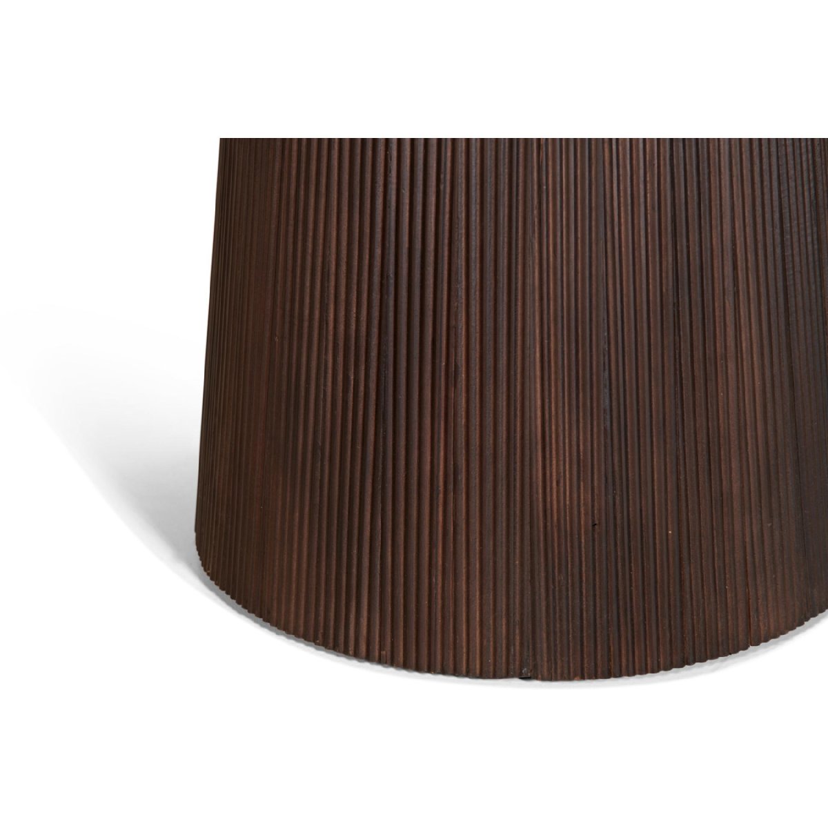 De geribde middenpoot geeft de tafel een grafisch, modern accent én zorgt voor uitstekende stabiliteit, ook bij intensief dagelijks gebruik. Het massieve mangohout is duurzaam en makkelijk in onderhoud. Regelmatig afnemen met een droge of licht vochtige doek houdt het blad schoon; verzorg het hout periodiek met een geschikte houtbeschermer voor extra bescherming en een blijvende, diepe kleur. Maak gemorste vloeistoffen meteen droog en gebruik onderzetters en placemats om kringen en vlekken te voorkomen. Vilt onder de stoelen voorkomt krassen op het houten oppervlak. De donkerbruine finish laat zich eenvoudig combineren met zwarte stalen accenten, warme aardetinten of andere houtsoorten. Zo haal je een robuuste, comfortabele en stijlvaste mangohouten eettafel in huis die jarenlang mooi blijft en moeiteloos meegroeit met jouw interieurstijl.