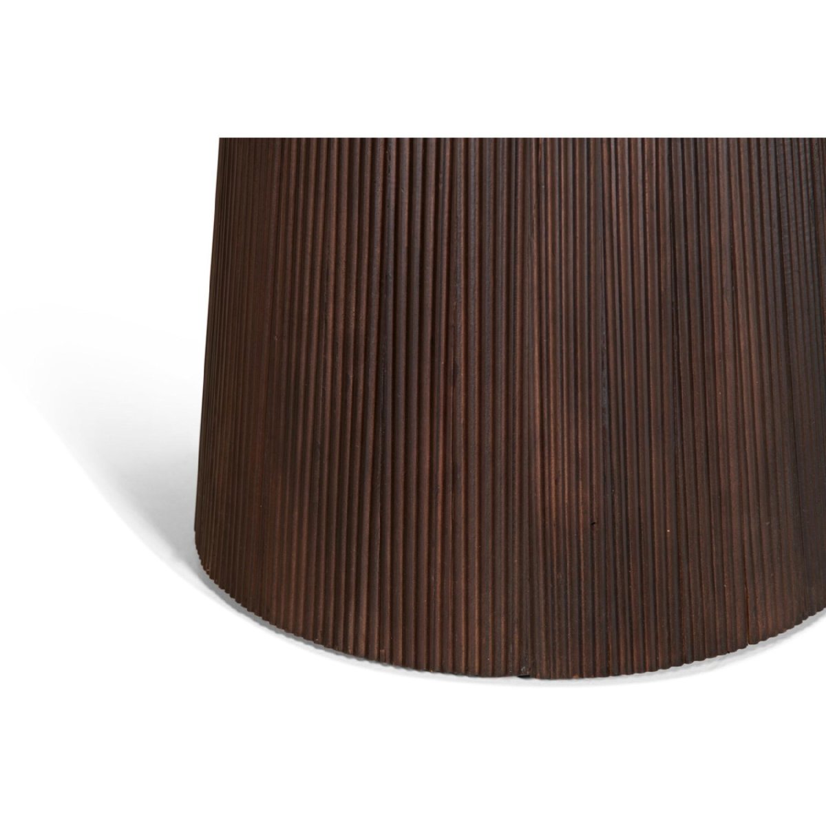 Het tafelblad met Swiss edge geeft de ronde eettafel een slank, verfijnd silhouet en een hoogwaardige afwerking. De verjongde rand oogt elegant, ligt prettig in de hand en behoudt tegelijkertijd het robuuste karakter van mangohout. De echte blikvanger is de geribbelde kolompoot: een modern, grafisch detail dat voor diepte, schaduwspel en extra luxe zorgt. Dit fluted profiel contrasteert prachtig met het gladde blad en maakt de tafel een stijlvol statement in elk interieur, van modern tot hotel chique. Qua onderhoud is de tafel praktisch in gebruik: regelmatig afstoffen en afnemen met een licht vochtige doek is voldoende. Gebruik onderzetters en placemats om het blad te beschermen, zodat je jarenlang plezier hebt van een stevige, stijlvolle en tijdloze ronde eettafel van mangohout die het middelpunt vormt van je eetruimte.
