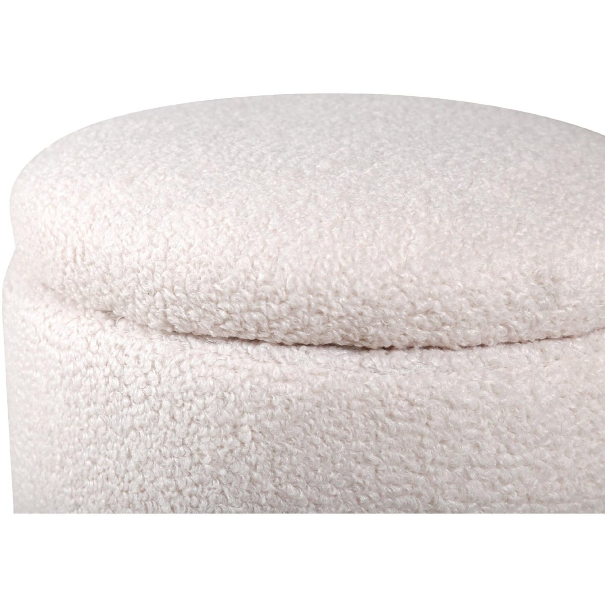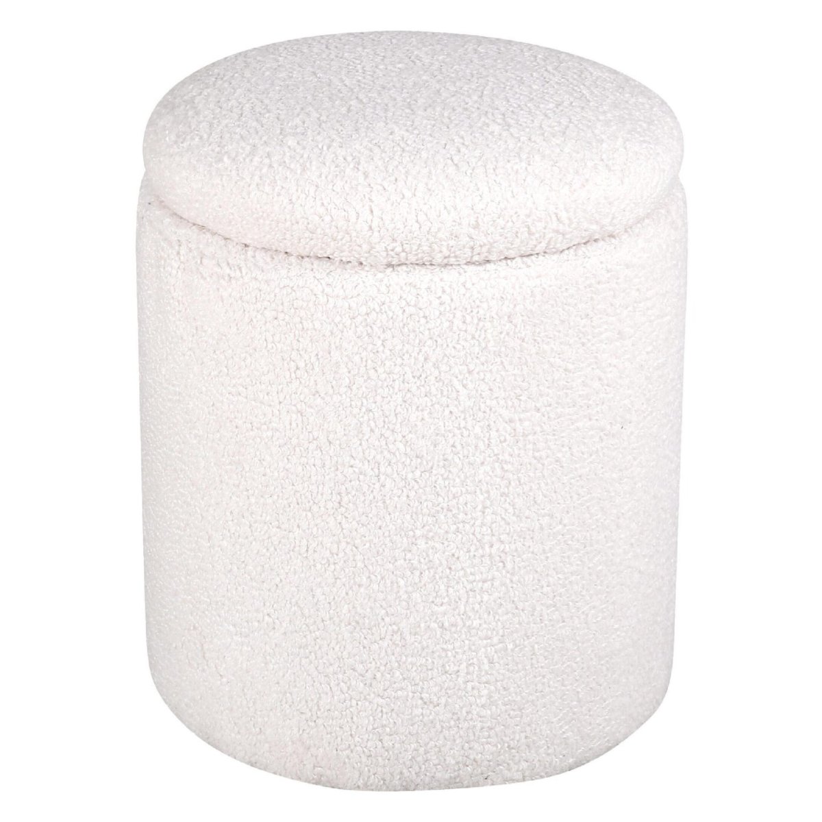 Deze ronde opbergpoef in teddy offwhite is een compacte eyecatcher die stijlvol zitcomfort en praktische opbergruimte combineert. De zachte teddy-bekleding zorgt voor een warme, moderne uitstraling, terwijl het afneembare deksel direct toegang geeft tot de verborgen opbergruimte binnenin. Gebruik de poef als extra zitplaats, comfortabele voetenbank of decoratief krukje in de woonkamer, slaapkamer of hal. Dankzij het ronde model en de lichte botwitte kleur past deze opbergpoef moeiteloos in een Scandinavisch, minimalistisch of hotel chique interieur. Het stevige frame met comfortabele schuimvulling zorgt voor stabiliteit, lange levensduur en dagelijks gebruiksgemak.