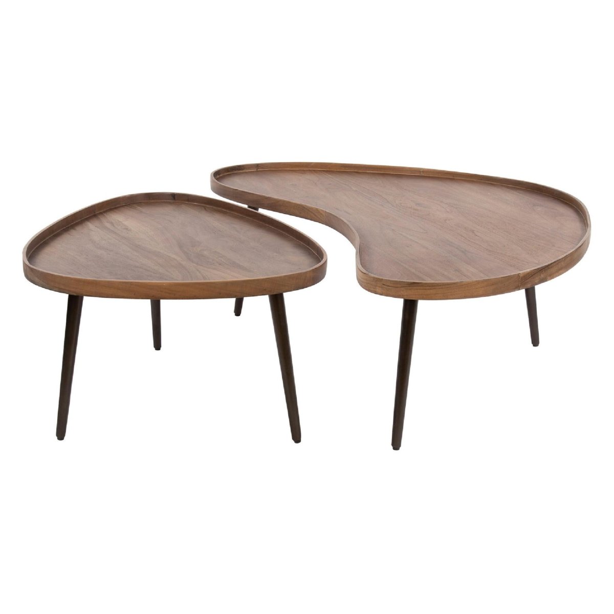 - Uitvoering: 2 salontafels met organische, afgeronde vormen en opstaand blad
