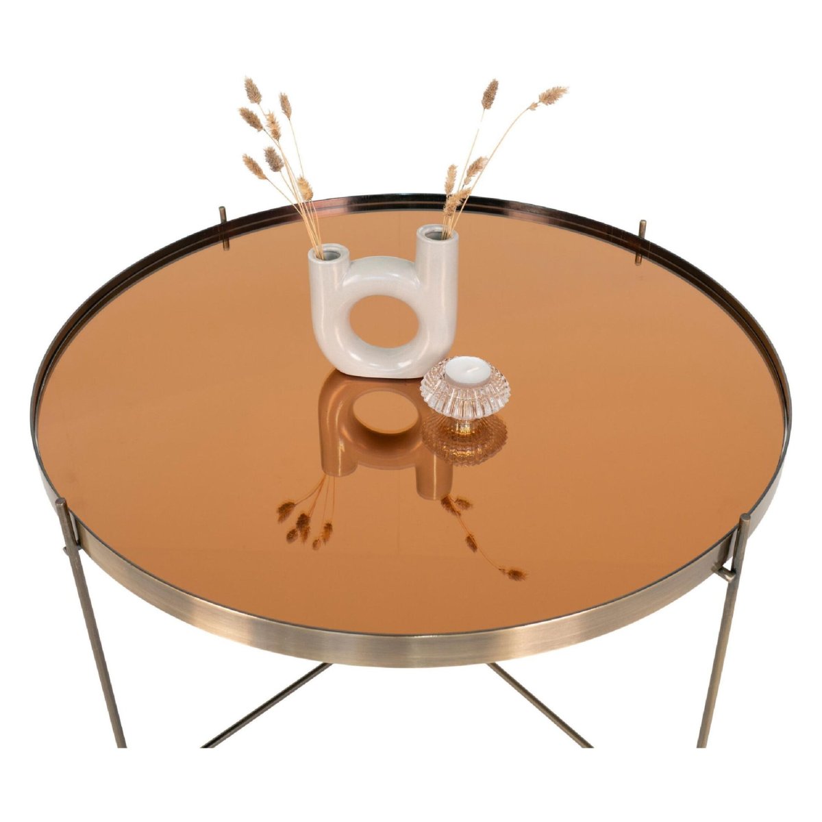 Glazen salontafel met brass: licht, ruimtelijk en luxe