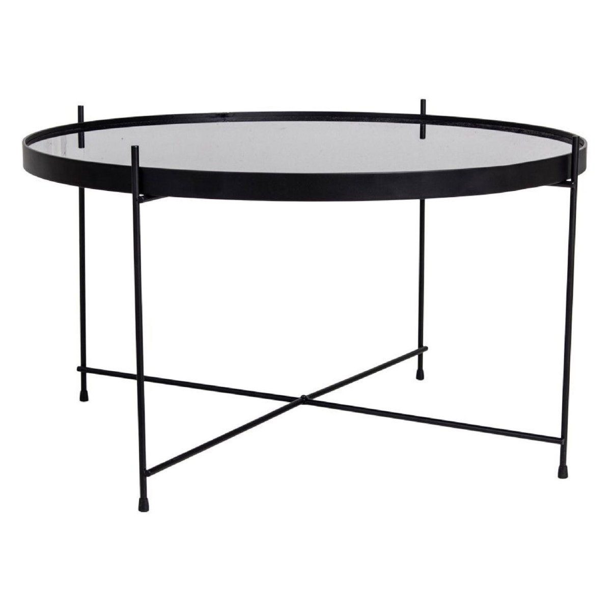 Het ronde glazen tafelblad geeft je zithoek een licht, ruimtelijk gevoel en zorgt voor een rustige, opgeruimde look. In combinatie met het slanke, zwart gepoedercoate stalen onderstel krijgt de salontafel een moderne, industriële uitstraling die perfect aansluit bij populaire woonstijlen als Scandinavisch, hotel chique, modern en urban. Het transparante blad laat je vloerkleed, bankpootjes en decoratie duidelijk zien, zonder dat de tafel zelf te aanwezig is. De ronde vorm voorkomt scherpe hoeken en maakt de tafel ideaal voor kleinere ruimtes en drukke huishoudens: je loopt er soepel omheen en creëert toch voldoende neerzetruimte. Het sterke stalen frame geeft de stevigheid die je zoekt in een salontafel voor dagelijks gebruik, zodat je jaren plezier hebt van dit tijdloze meubel.