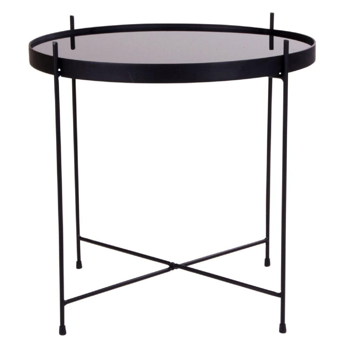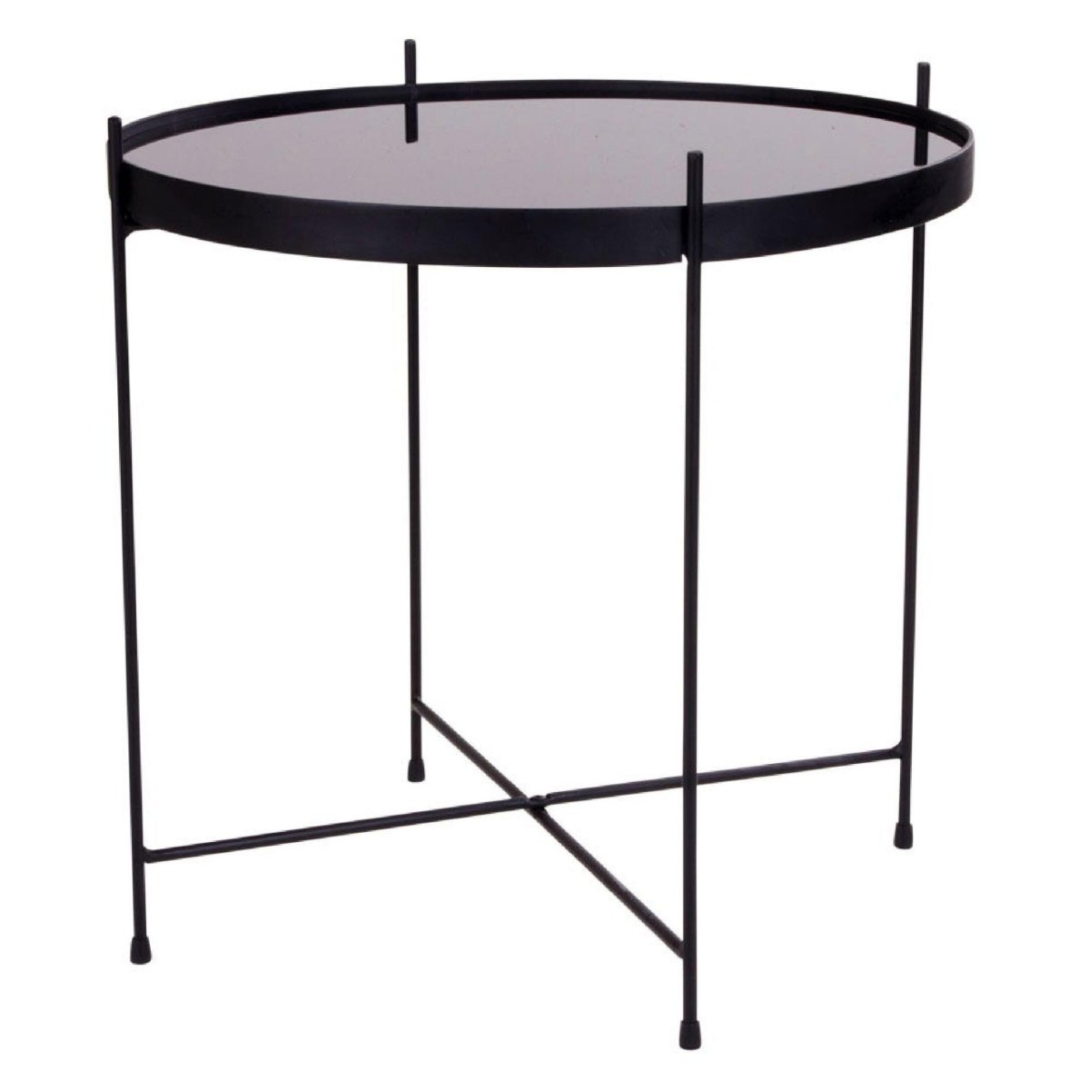Compacte ronde salontafel met helder glazen blad en diepzwart stalen onderstel. Dankzij het formaat Ø48 x H48 cm is deze koffietafel perfect voor een kleinere woonkamer, knusse zithoek, studio of studentenkamer. Het minimalistische design met strakke lijnen sluit moeiteloos aan bij een modern, industrieel of Scandinavisch interieur. Het robuuste, gepoedercoate staal zorgt voor een stabiele basis, terwijl het glas een licht en ruimtelijk effect geeft. Gebruik de tafel als centrale salontafel of als bijzettafel naast de bank; ideaal om te stylen met een vaas, boeken, tijdschriften of een sierlijk dienblad.