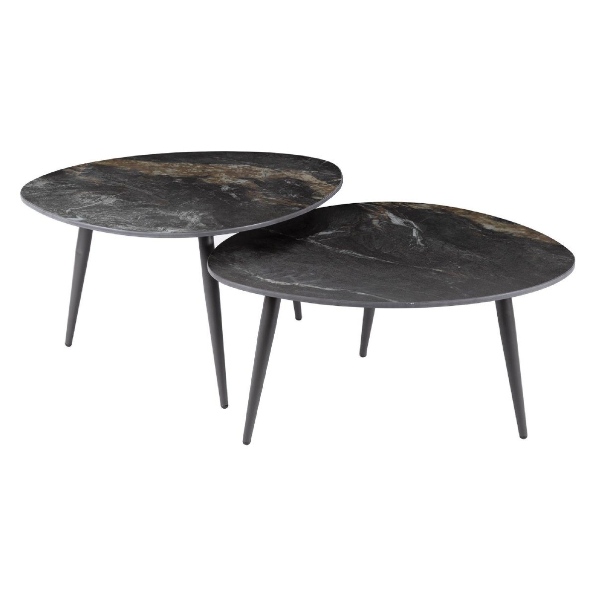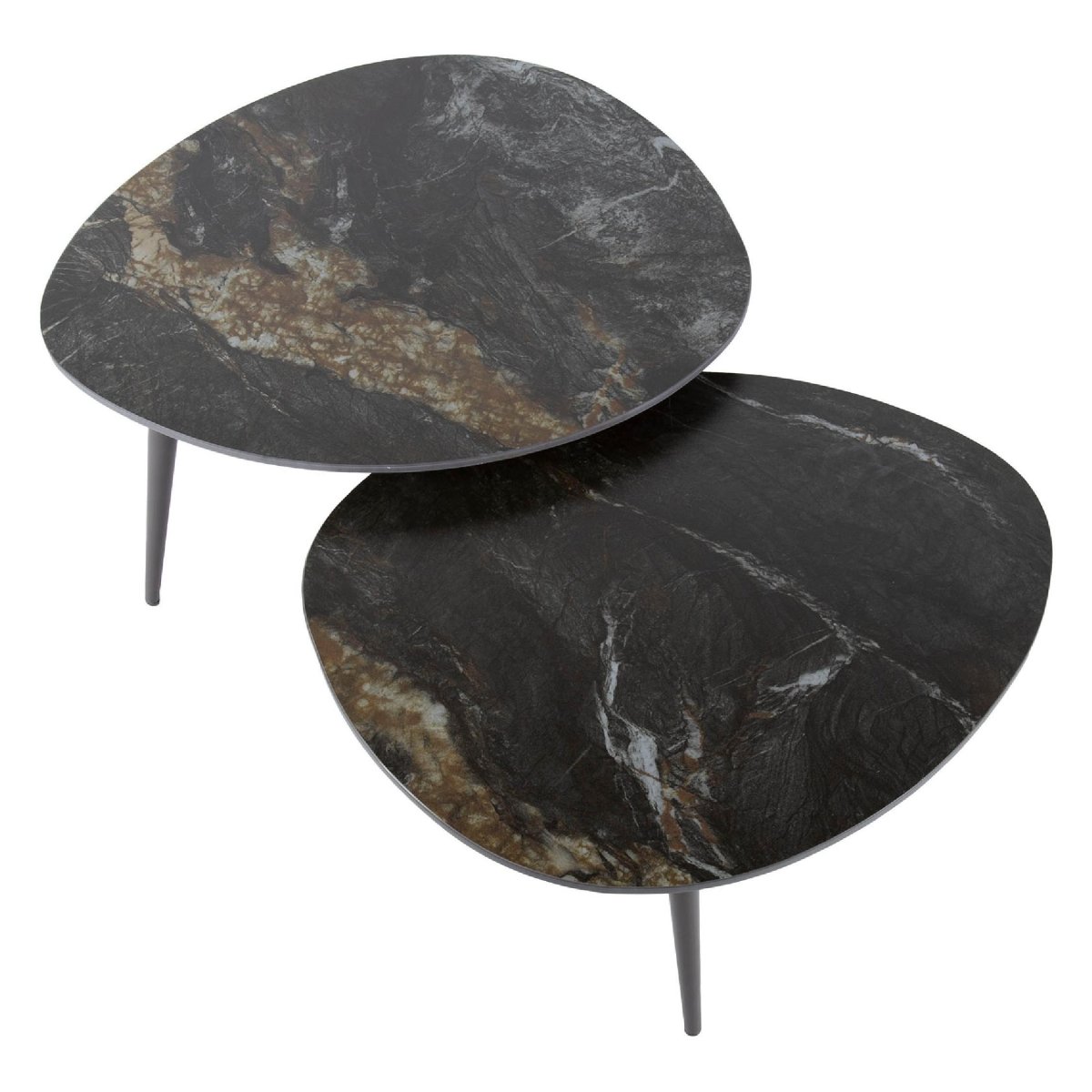 Deze organische salontafel set van 2 is eenvoudig te integreren in verschillende interieurstijlen. Of je nu een modern, Scandinavisch, industrieel, minimalistisch, klassiek of hotel chique interieur hebt, de combinatie van het zwarte keramische blad met natuursteen-look en het minimalistische metalen frame past er moeiteloos bij.