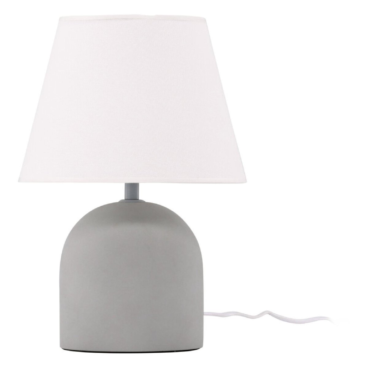 Deze compacte tafellamp met robuuste betonnen voet en witte linnen kap brengt direct warme sfeer in huis. De ronde grijze basis geeft een stoere, industriële uitstraling, terwijl de linnen lampenkap het licht zacht filtert voor gezellige, diffuus verspreide sfeerverlichting. Dankzij het tijdloze, neutrale ontwerp past deze tafellamp moeiteloos in een modern, Scandinavisch of landelijk interieur. Perfect als lamp op een dressoir, bijzettafel, vensterbank of nachtkastje en ideaal voor een knusse filmavond, etentje of ontspannen leesmoment. De combinatie van grijs en wit zorgt voor rust, een rustige basis in je interieur en maakt combineren met andere woonaccessoires extra eenvoudig. Een stijlvol woonaccessoire én praktische tafellamp in één.