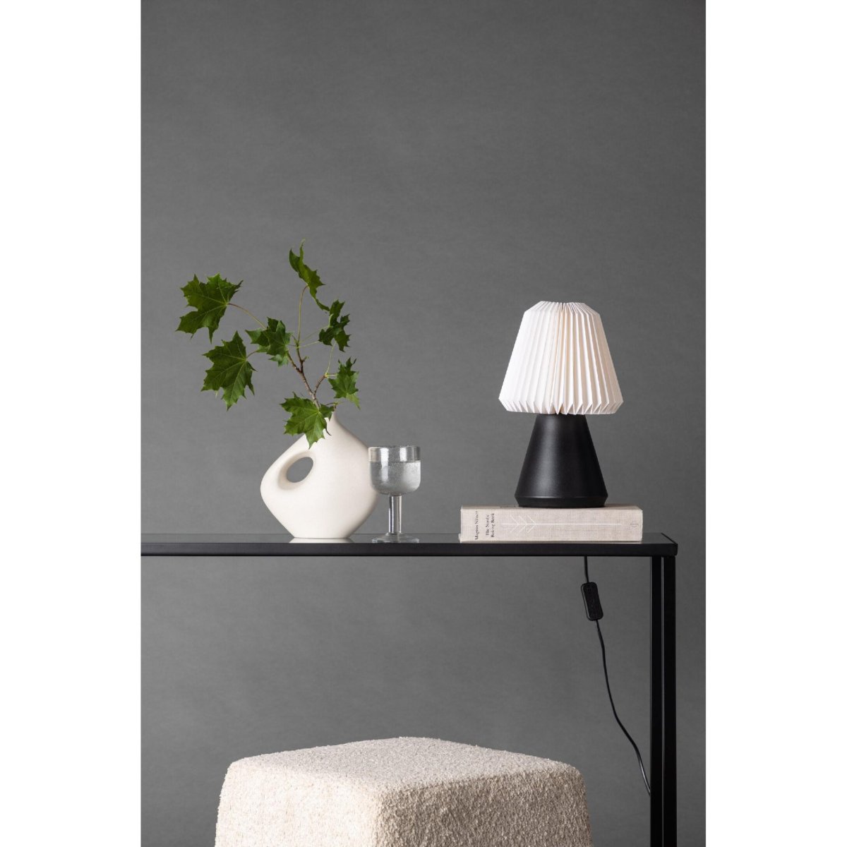 Een compacte zwarte tafellamp die sfeer, design en functionaliteit combineert op je bureau, nachtkastje of dressoir. De conische, matzwarte voet met strakke afwerking en de witte plissé lampenkap van papier geven je interieur direct een moderne, tijdloze uitstraling. Dankzij de touchbediening schakel je de tafellamp met één lichte aanraking aan of uit, ideaal als bureaulamp, bedlampje of sfeerlamp. Het formaat van 20 x 33 x 20 cm maakt dit design een ruimtebesparende verlichtingoplossing voor slaapkamer, woonkamer of thuiskantoor, terwijl de mix van papier en staal zorgt voor een stijlvolle, solide look die moeiteloos in diverse woonstijlen past.