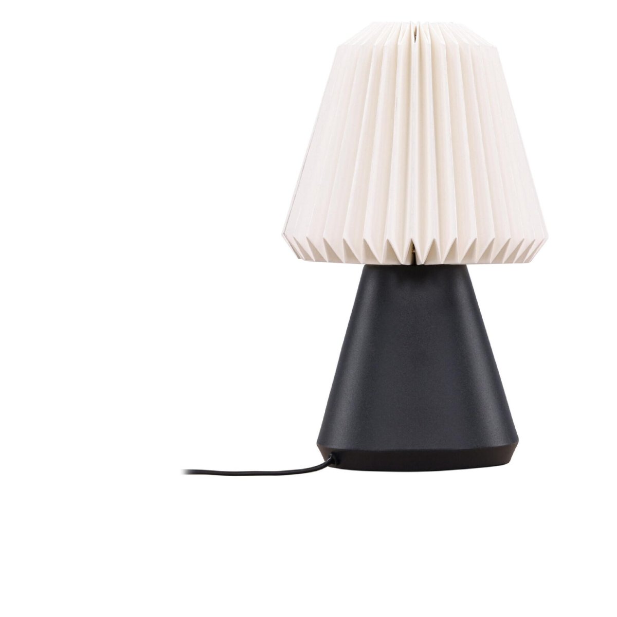 Deze zwarte tafellamp is ontworpen om direct rust en sfeer in je interieur te brengen. De plissé kap van papier verzacht het licht en zorgt voor een gelijkmatige, huiselijke gloed, ideaal voor wie houdt van een warme, uitnodigende kamer. De slanke, zwarte voet vormt een stijlvol contrast met de witte kap en sluit naadloos aan bij moderne, minimalistische en Scandinavische interieurs. Op je bureau levert de lamp zacht, niet-verblindend licht dat je werkplek helder houdt zonder harde schaduwen; op je nachtkastje creëert het een kalmerende ambiance om te lezen of te ontspannen. Doordat de kap het licht subtiel verspreidt, blijft de ruimte functioneel verlicht, terwijl de sfeer warm en geborgen aanvoelt. Zo voeg je met één compact designobject karakter, rust en visuele eenheid toe aan je woonruimte.