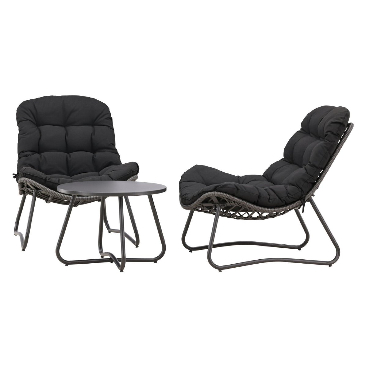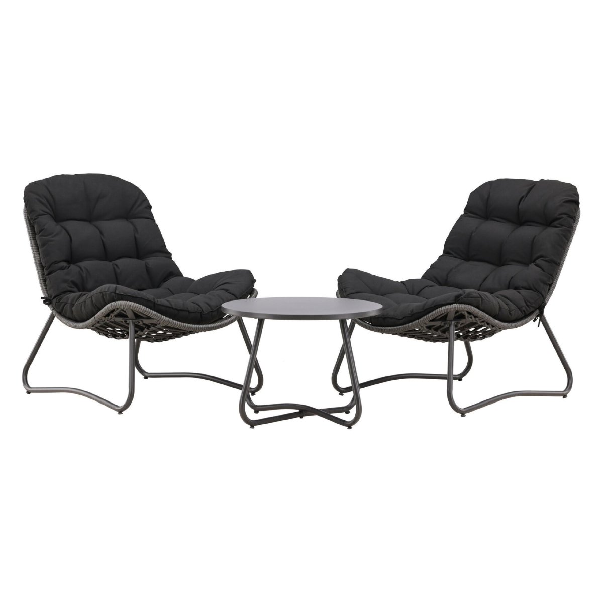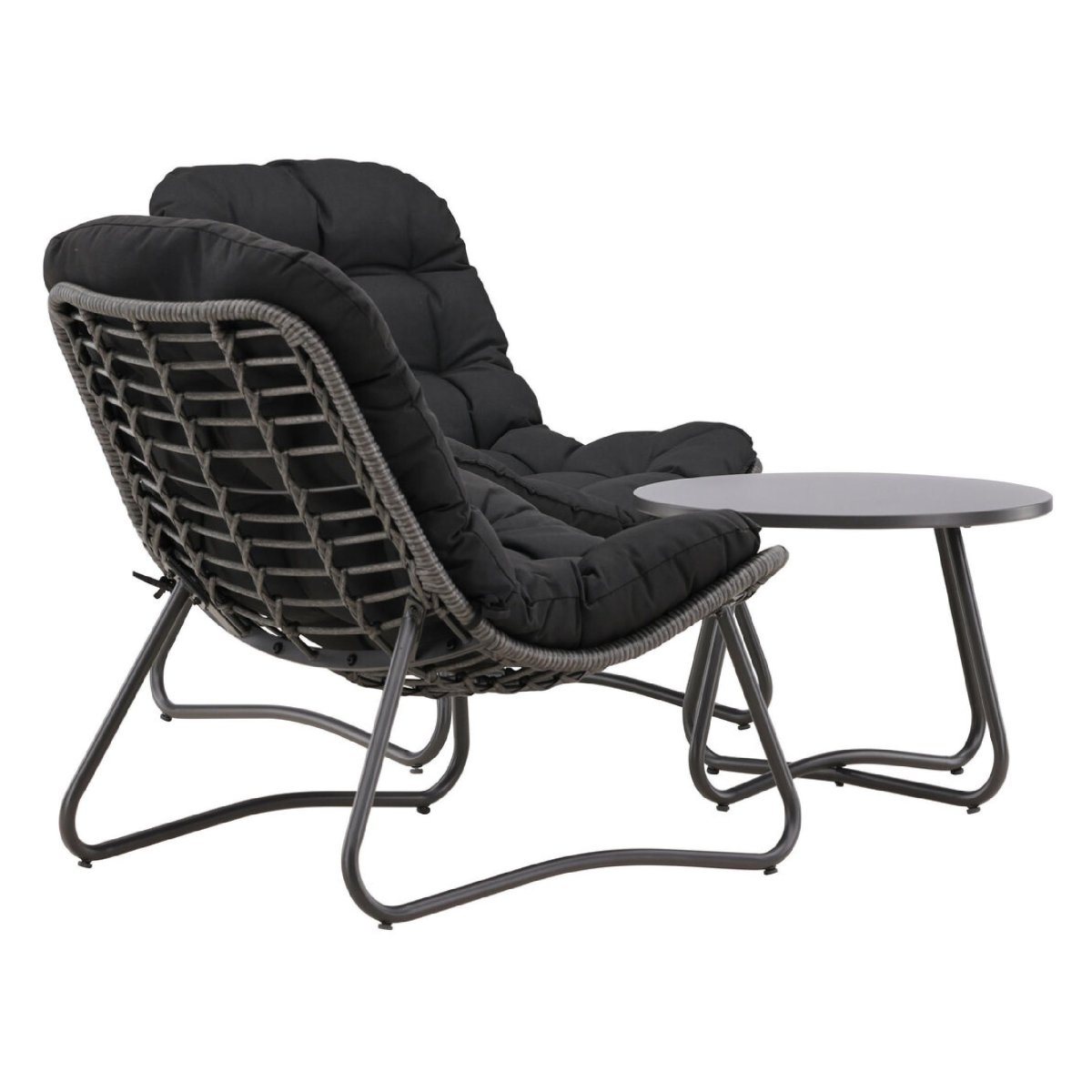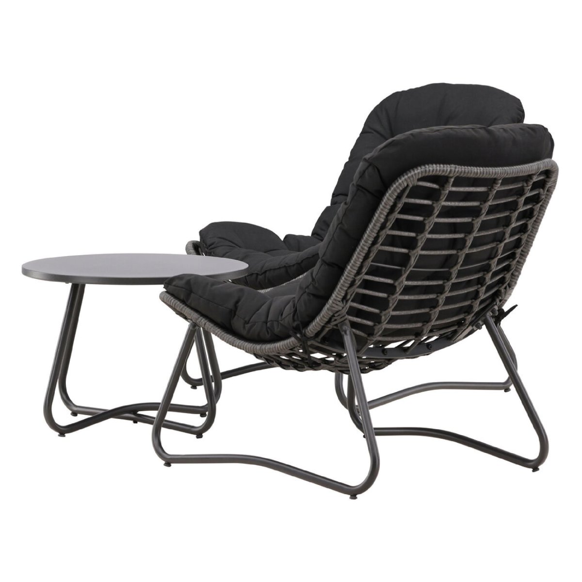 • Samenstelling set: 2 loungefauteuils en 1 ronde tafel