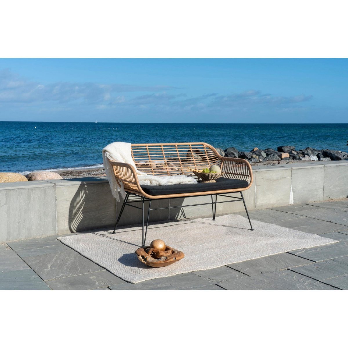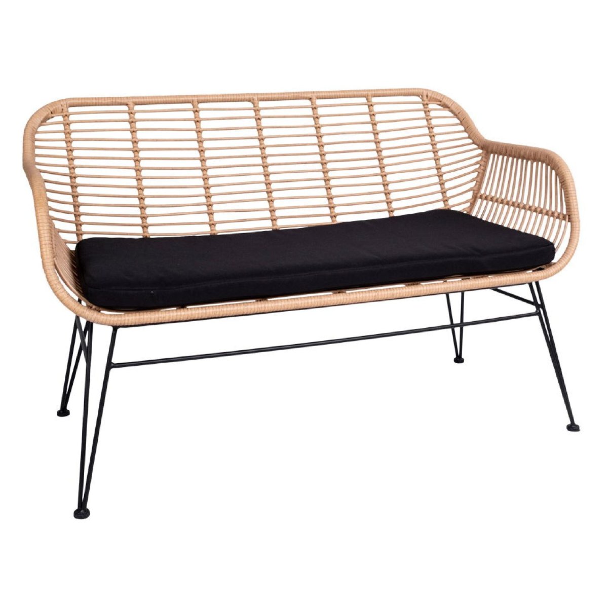 Deze stijlvolle buitenbank van Nest of Nora geeft je zithoek in de tuin, op het balkon of op het terras direct een luxe, sfeervolle upgrade. De natuurlijke polyrattan rotanlook, het slanke stalen onderstel in zwart en het comfortabele kussen maken deze tuinbank een perfecte mix van design en dagelijks gebruiksgemak. De loungebank is onderhoudsarm, weerbestendig en sluit naadloos aan bij uiteenlopende woonstijlen: van boho en Scandinavisch tot modern en minimalistisch. Gebruik de bank als compacte loungebank, extra zitplaats bij je tuintafel of als eyecatcher op je veranda. Het stalen frame zorgt voor een stabiele basis, terwijl het luchtige vlechtwerk in rotanlook een open, lichte uitstraling heeft en prettig aanvoelt. Zo creëer je moeiteloos een gezellige buitenruimte waar je elk seizoen opnieuw graag neerstrijkt.