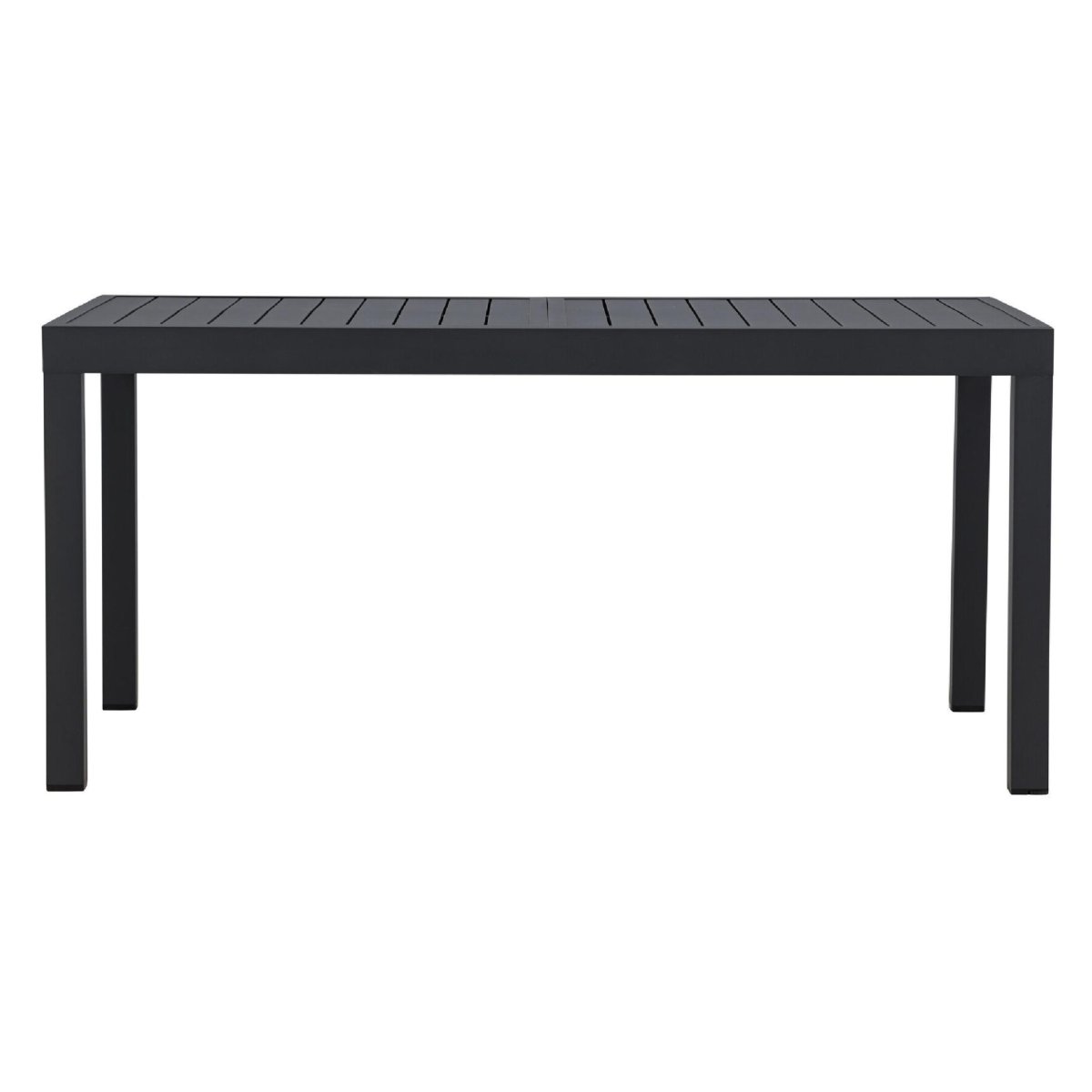Deze zwarte tuintafel is volledig vervaardigd uit aluminium: een materiaal dat sterk, licht en weerbestendig is. Daardoor verplaats je de tafel eenvoudig, terwijl hij tijdens gebruik toch solide en stabiel aanvoelt. Aluminium is ideaal voor buitenmeubilair dat het hele seizoen buiten blijft staan, omdat het weinig onderhoud vraagt en goed bestand is tegen regen, zon en temperatuurverschillen. Een snelle schoonmaakbeurt met lauw water en een zachte doek houdt het tafelblad en frame mooi en schoon. Doordat zowel blad, frame als poten van hetzelfde materiaal zijn gemaakt, oogt het geheel strak, uniform en modern. Zo kies je een duurzame tuintafel waar je jarenlang plezier van hebt in je tuin, op je terras of veranda.