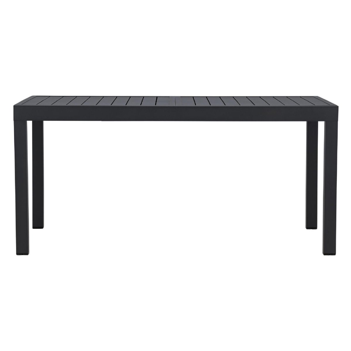 Met deze uitschuifbare rechthoekige tuintafel in zwart aluminium geef je je terras, veranda of tuin direct een strakke, moderne upgrade. De buitentafel heeft een lichtgewicht maar robuuste aluminium constructie en een tijdloos design dat naadloos aansluit bij verschillende tuinsets. Dankzij het uitschuifbare ontwerp creëer je in een paar tellen extra zitplaatsen, zodat de tafel zowel geschikt is voor dagelijks gebruik als voor etentjes met grotere gezelschappen. Het onderhoudsarme, weerbestendige materiaal zorgt ervoor dat de tafel het hele buitenseizoen probleemloos buiten kan blijven staan. Het rechthoekige tafelblad sluit mooi aan bij loungebanken, tuinstoelen en dining sets, terwijl de standaard tafelhoogte zorgt voor comfortabel buiten dineren en borrelen. Zo kies je een praktische, duurzame én elegante outdoor eettafel die je buitenruimte optimaal benut.