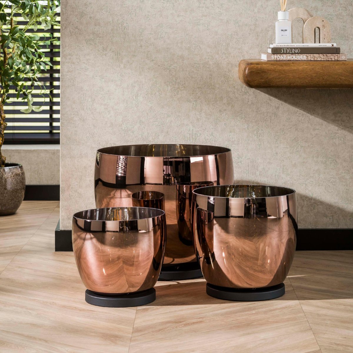 Deze koperen vloerlamp is ontworpen als opvallend designstatement, maar blijft tegelijkertijd subtiel en tijdloos in uitstraling. De combinatie van koperkleurig glas en slanke metalen details sluit naadloos aan bij uiteenlopende interieurstijlen, zoals modern, industrieel, Scandinavisch, vintage en hotel chique. De XL kap met een diameter van 33 cm zorgt ervoor dat de lamp ook in ruimere woonkamers, lofts of open woonkeukens goed tot zijn recht komt. Gebruik de staande lamp als los statement piece in een hoek of combineer hem met andere lampen en accessoires in koperkleurig of rookglas voor een harmonieus lichtplan. Zo creëer je een doordachte, sfeervolle verlichting in huis, waarbij deze vloerlamp een belangrijke blikvanger en sfeermaker vormt.