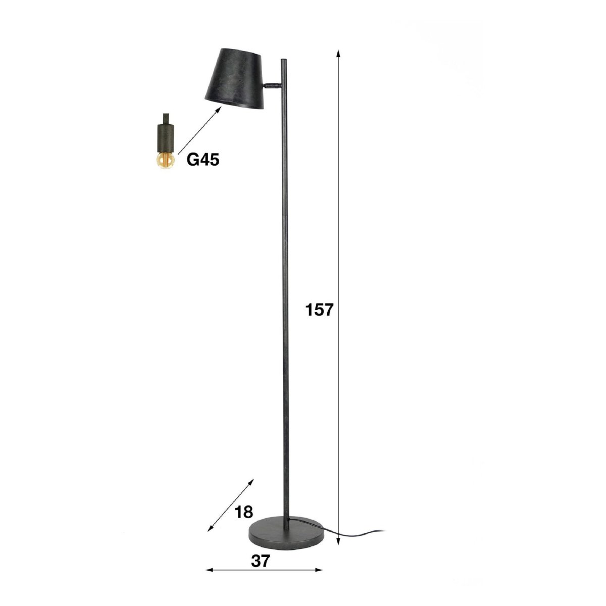 De verstelbare kap maakt deze charcoal vloerlamp uitzonderlijk veelzijdig in dagelijks gebruik. Je draait de lampenkap eenvoudig in de gewenste richting, zodat je altijd beschikt over gericht licht om te lezen, te werken of ontspannen een boek of serie te volgen op de bank. Daardoor functioneert deze staande lamp moeiteloos als leeslamp naast je fauteuil, als sfeerlamp in de woonkamer of als praktische vloerlamp in de slaapkamer of thuiswerkplek. De relatief compacte kap met een diameter van 18 cm zorgt voor een mooie, gebundelde lichtbundel zonder verblinding, zeker in combinatie met een warme LED lichtbron. Zo creëer je met deze vloerlamp precies de hoeveelheid licht die je nodig hebt, van zachte sfeer tot functioneel werklicht.