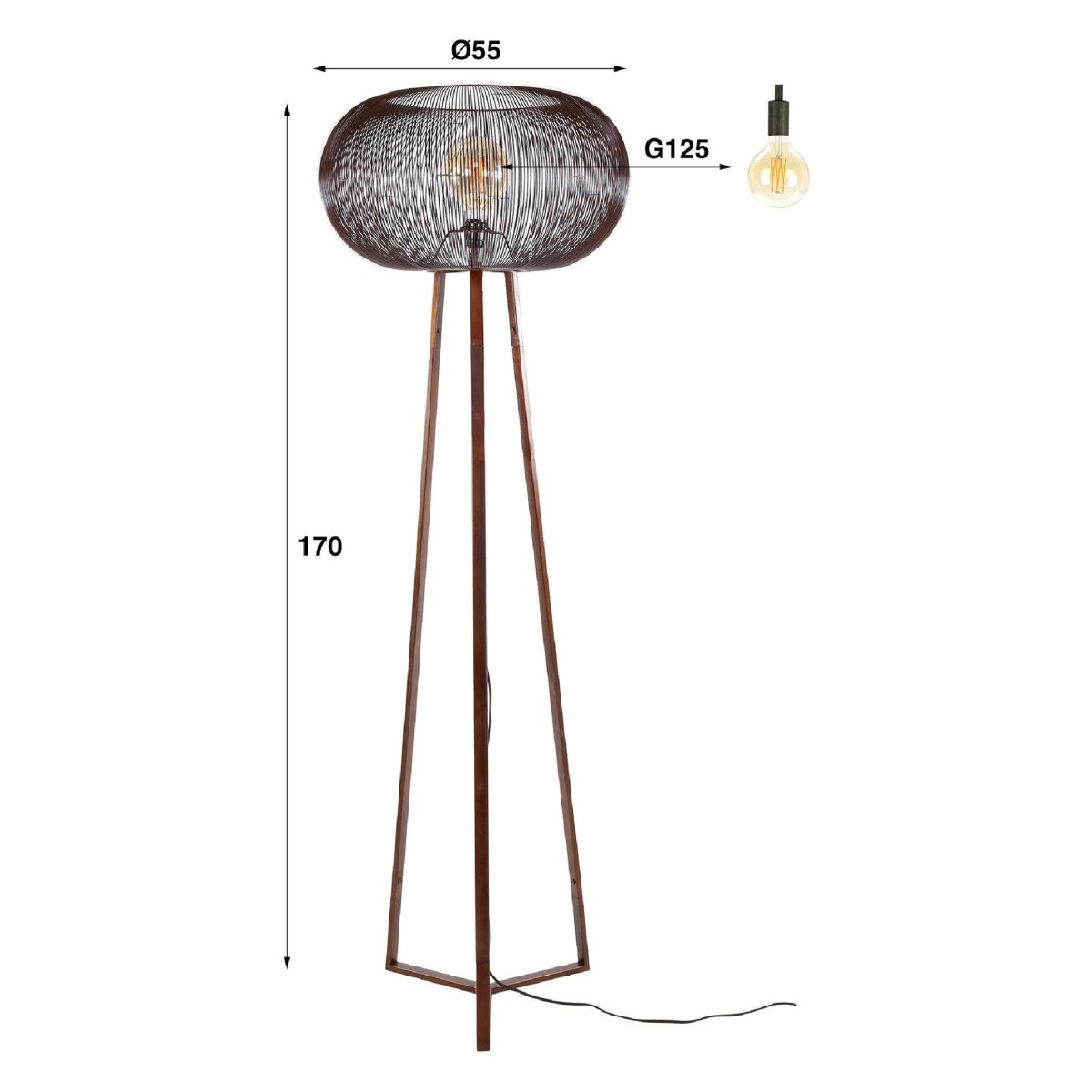 Dankzij de twee E27 fittingen kun je deze vloerlamp volledig afstemmen op de gewenste lichtsfeer. Gebruik warme LED filament lichtbronnen voor een gezellige, uitnodigende gloed die perfect is als woonkamerverlichting, leesverlichting of accentverlichting in een hoek van de kamer. De open, platte kap zorgt ervoor dat het licht zacht en rondom wordt verspreid, zonder te fel of verblindend te zijn. De aanbevolen G125 filament bollen met grote diameter maken het totaalplaatje compleet: de zichtbare lichtbron is een opvallend onderdeel van het design en versterkt de moderne, industriële en hotel chique uitstraling. Zo gebruik je deze staande lamp niet alleen als functionele vloerlamp, maar ook als decoratief designobject waarmee je sfeer, warmte en stijl toevoegt aan je interieur.