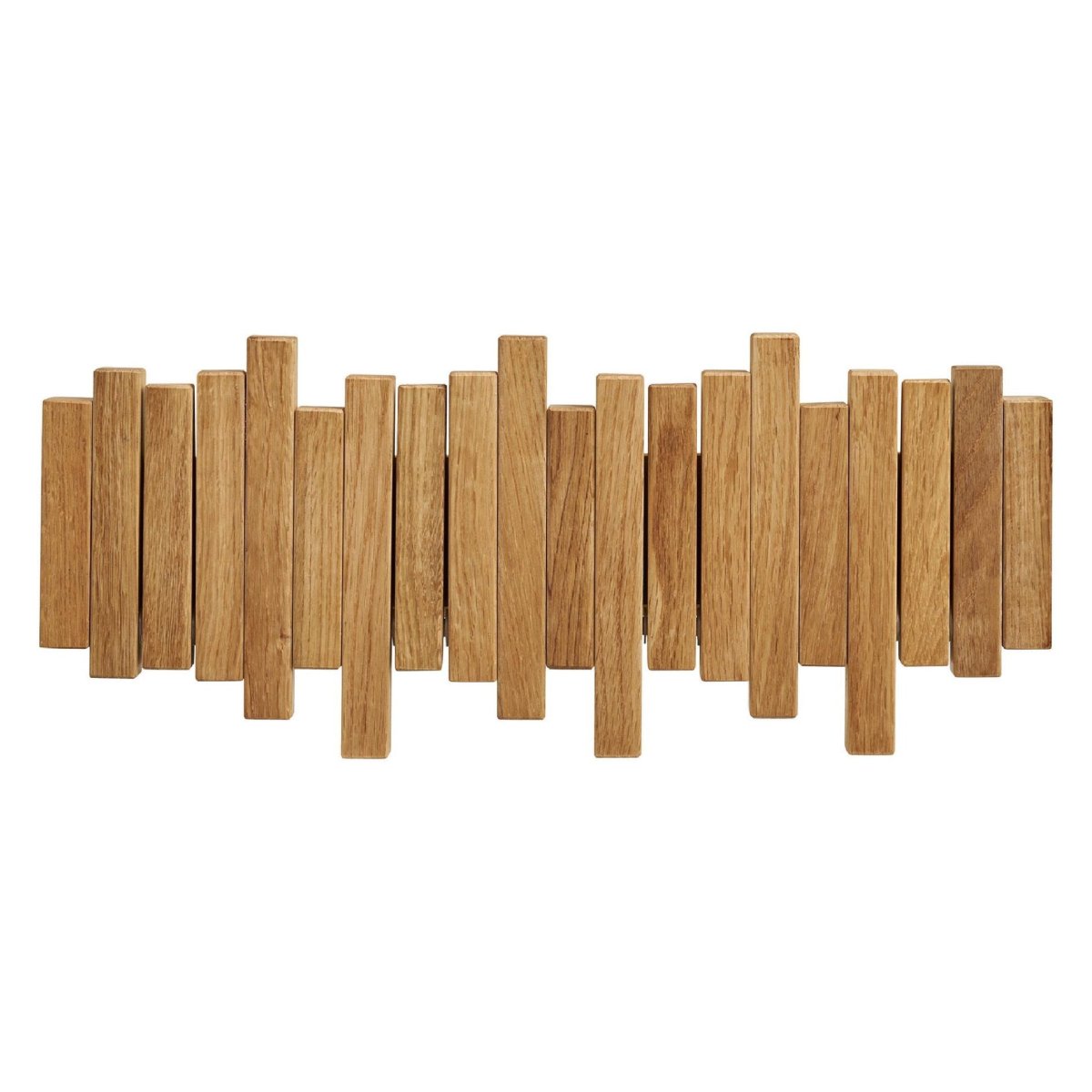 De mix van massief mangohout met een eikenlook en een natuurlijke finish geeft deze wandkapstok een warme, authentieke uitstraling. De zichtbare nerven en subtiele kleurvariaties maken elke kapstok uniek en karaktervol. Zo voeg je een rustig, natuurlijk accent toe aan je interieur, zonder dat de kapstok te opvallend aanwezig is. De bruine houttint combineert moeiteloos met witte muren, zachte pasteltinten en donkere accentkleuren. Ook sluit hij mooi aan bij andere materialen zoals metaal, wol, leer en rotan. Of je nu een Scandinavische, moderne of landelijke woonstijl hebt: deze houten wandkapstok laat je hal of gang direct gezelliger en uitnodigender ogen. Het stevige, kwalitatieve hout blijft bovendien mooi, zelfs bij intensief dagelijks gebruik.
