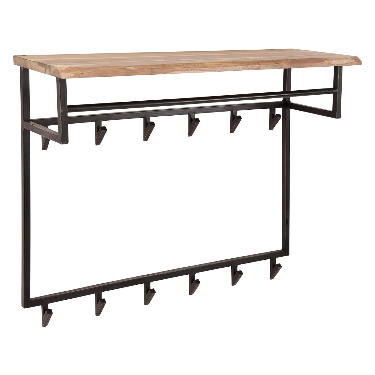 Aan de achterzijde zijn twee stevige bevestigingsogen aangebracht, zodat je de wandkapstok snel en veilig aan de muur kunt monteren. Met een lengte van 100 cm past dit model uitstekend boven een smalle schoenenkast, wandtafel of bankje, zelfs in kleinere gangen. Naast de hal is deze wandkapstok ook ideaal voor de bijkeuken, hobbykamer, kleedruimte of kantoor, waar je jassen, bedrijfskleding of accessoires overzichtelijk wilt ophangen. Het warme acaciahout in combinatie met het stoere zwarte metaal zorgt voor een moderne, industriële uitstraling die rust uitstraalt en tegelijkertijd veel functionaliteit biedt. Zo haal je met deze wandkapstok een praktische, duurzame en stijlvolle opbergoplossing in huis.