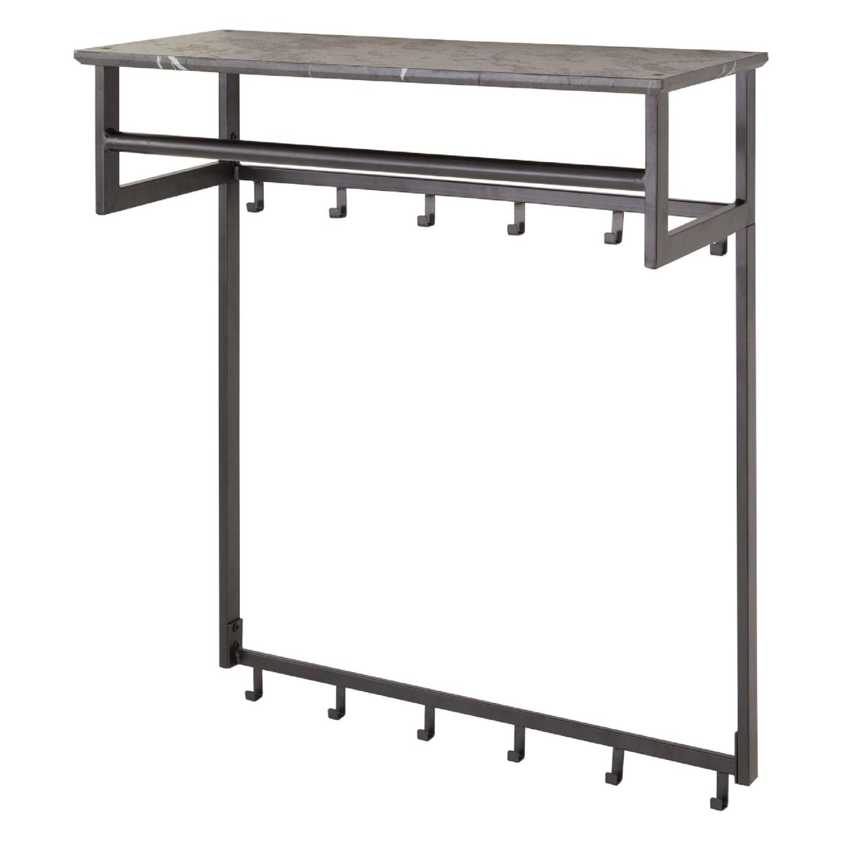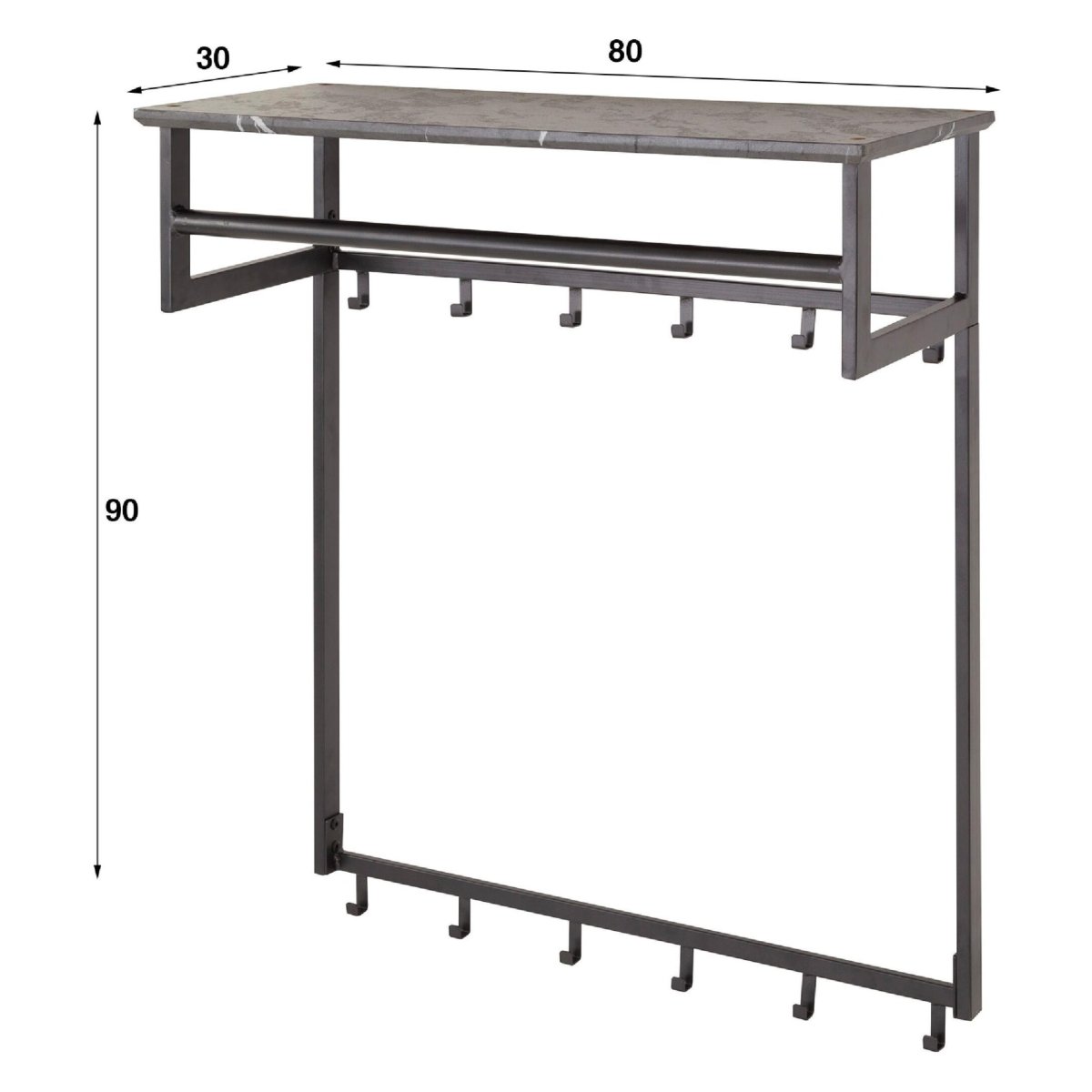 De Nest of Nora wandkapstok met roede, hoedenplank en haken in grafiet is een slimme, ruimtebesparende kapstok voor hal, gang, bijkeuken of slaapkamer. Deze metalen wandkapstok biedt een sterke roede voor kledinghangers, een ruime hoedenplank met 3D melamine natuursteenlook én twaalf praktische haken. Zo berg je jassen, tassen, sjaals, petten en accessoires overzichtelijk op, zonder dat je vloer vol komt te staan met losse spullen. Dankzij de compacte afmetingen past deze kapstok moeiteloos in zowel kleine als grotere ruimtes, terwijl de moderne grafietkleur en natuursteenlook eenvoudig te combineren zijn met verschillende interieurstijlen.