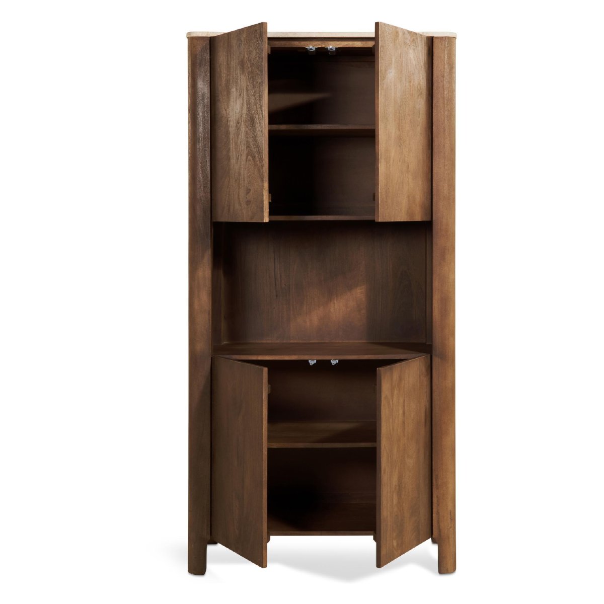 Gemaakt van hoogwaardig, massief mangohout straalt deze wandkast direct warmte en authenticiteit uit. De kastanjebruine finish accentueert de natuurlijke houtnerf, waardoor iedere kast een uniek patroon en een eigen uitstraling heeft. Kies je voor het beige marmeren bovenblad, dan krijgt het meubel een luxe, hotel chique look met een subtiel kleurcontrast. Met een mangohouten top ontstaat juist een rustige, ton-sur-ton uitstraling die naadloos opgaat in een natuurlijk interieur. Beide varianten zijn robuust, duurzaam en tijdloos, en sluiten perfect aan bij een modern, industrieel, Scandinavisch of Japandi interieur. De combinatie van organische houttextuur, strak lijnenspel en zorgvuldige afwerking zorgt ervoor dat deze opbergkast zowel solide als premium aanvoelt, klaar voor intensief dagelijks gebruik in woonkamer, eetkamer of werkkamer.