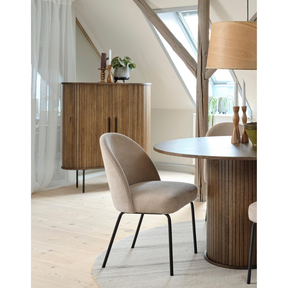 Het zwarte metalen frame tilt de kast optisch omhoog, waardoor het geheel lichter oogt en je ruimte groter en ruimtelijker lijkt. De vrije ruimte onder de kast is bovendien praktisch: je komt er gemakkelijk bij met een stofzuiger of robotstofzuiger, zodat schoonmaken geen gedoe is. Het stevige metalen onderstel zorgt voor extra stabiliteit, ook wanneer je de kast vol zet met boeken, servies of apparatuur. De combinatie van warm hout en zwart metaal geeft een modern, industrieel accent dat mooi contrasteert met zachte vloerkleden, gordijnen en andere texturen. Daarmee is deze wandkast een veelzijdige opbergoplossing voor woonkamer, eetkamer, thuiskantoor of hal – ontworpen voor dagelijks comfort, langdurig gebruik en een tijdloze, stijlvolle uitstraling.