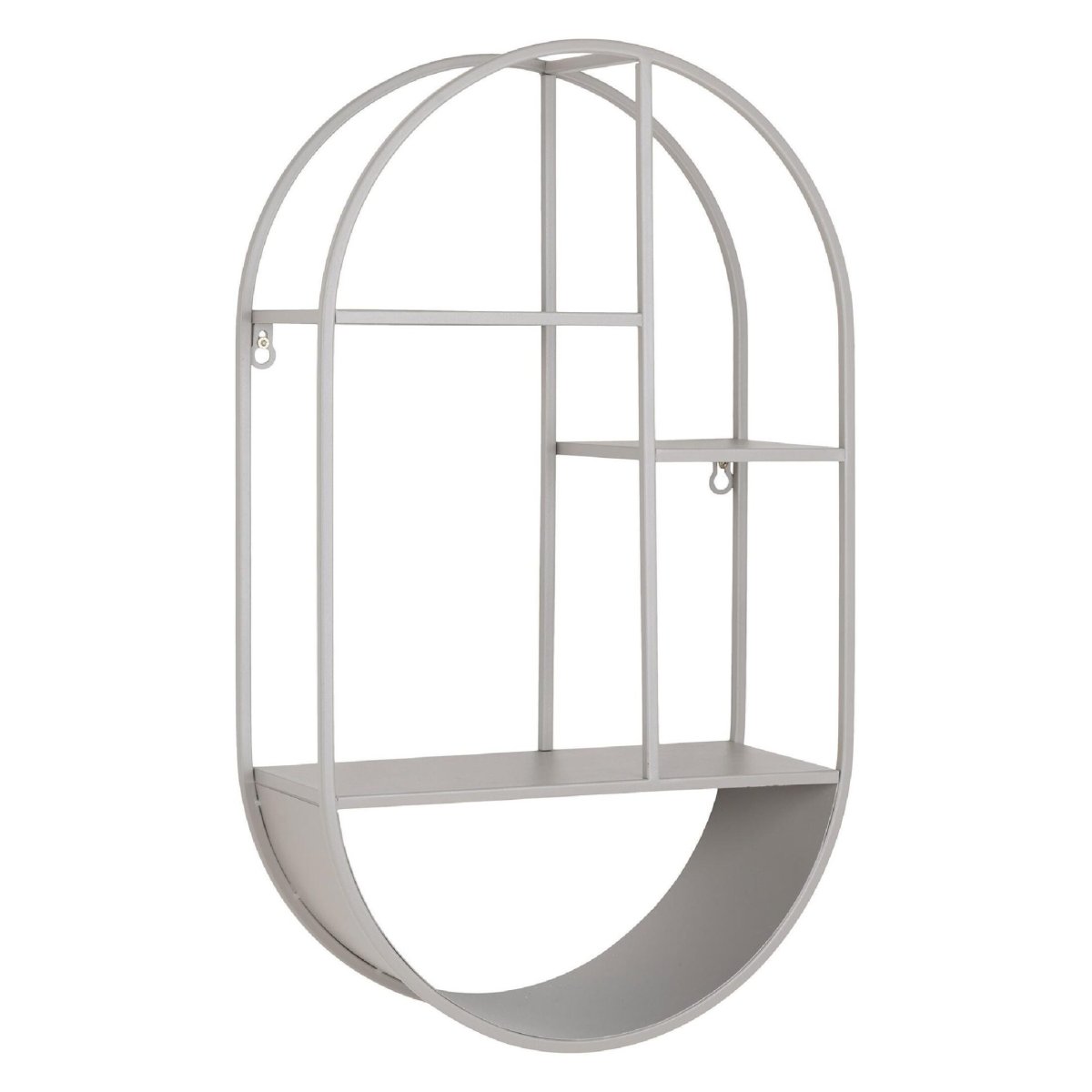 De ovale vorm van deze wandplank geeft je muur een zachte, organische touch, terwijl het robuuste stalen frame zorgt voor een stoer, industrieel accent. Zo creëer je een stijlvolle mix van elegant en modern. Het wandrek komt perfect tot zijn recht boven een dressoir, naast een spiegel of als statement piece aan een lege muur. Door het open ontwerp oogt de muurplank licht en ruimtelijk, waardoor je interieur niet druk wordt. Gebruik de plank voor decoraties zoals kleine planten, fotolijstjes, geurkaarsen of reis souvenirs. De koele grijstint is tijdloos en neutraal, en combineert moeiteloos met hout, beton, zwart metaal of kleurrijke woonaccessoires. Zo ontstaat een harmonieus geheel in je woonkamer, slaapkamer, hal of werkplek.