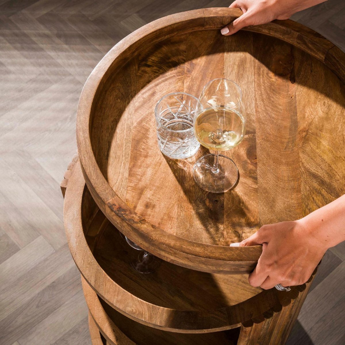 Nest of Nora Wijntrolley met wielen Sari – Serveerwagen voor drank – Mangohout