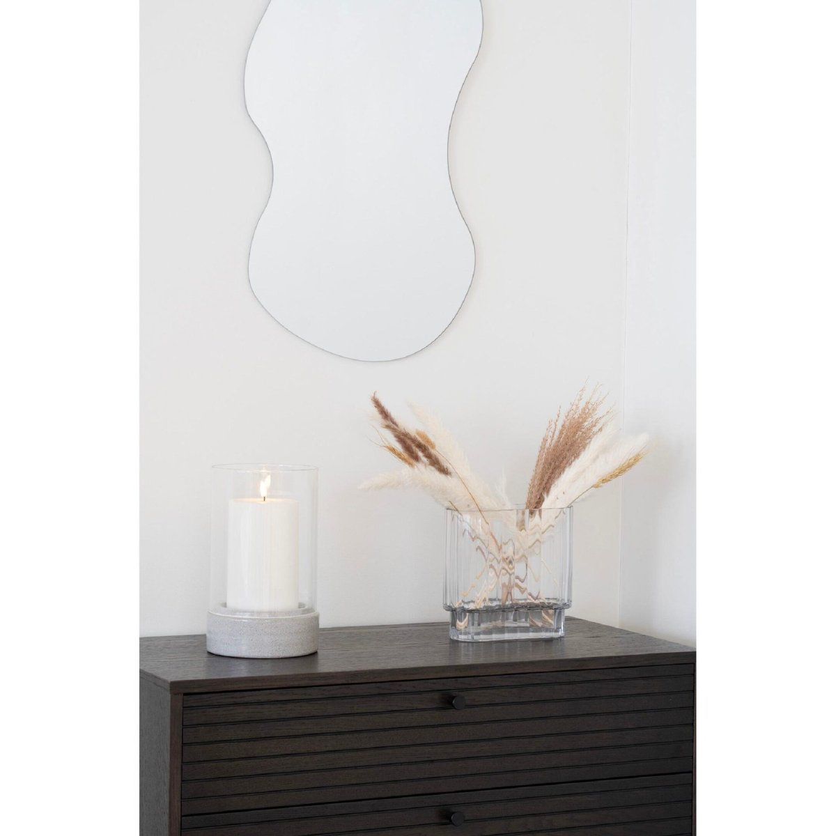 De kracht van dit glazen windlicht zit in de harmonieuze combinatie van materialen. De verzwaarde keramische basis zorgt voor stabiliteit, zodat je kaars stevig en veilig blijft staan, terwijl de transparante glazen cilinder de vlam afschermt tegen tocht en plotselinge luchtstromen. Zo geniet je van rustig, gelijkmatig flakkerend licht zonder last van rook of trekkende vlammen. De zachte grijstint laat zich moeiteloos combineren met natuurlijke houttinten, beton, zwart metaal en aaibare stoffen, waardoor dit accessoire naadloos aansluit bij diverse woonstijlen. Plaats het windlicht solo voor een minimalistische uitstraling of groepeer meerdere exemplaren voor extra impact op dressoir, eettafel, sidetable of schouw. Overdag voegt de kaarshouder een stijlvolle touch toe aan je interieur, ’s avonds creëert hij een warme, uitnodigende sfeer.
